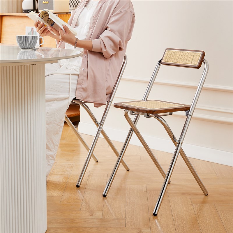 藤编中古风折叠椅子带靠背不占地方的餐椅新款复古家用阳台休闲
