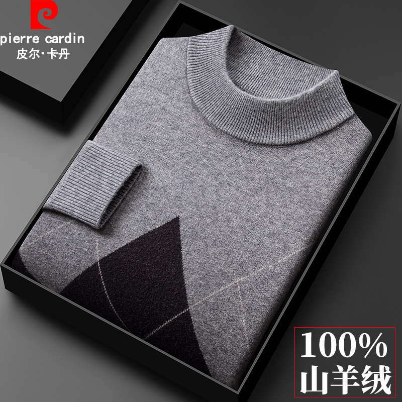皮尔卡丹羊绒衫男士半高领加厚打底毛衣中年爸爸装冬季内搭羊毛衫