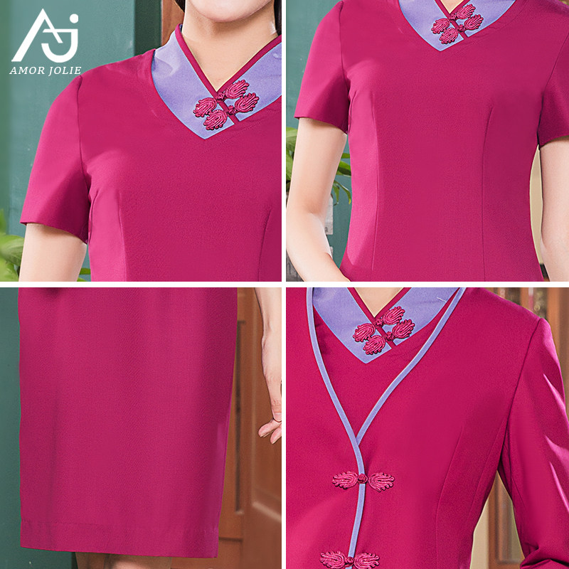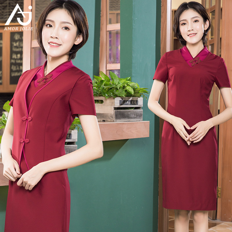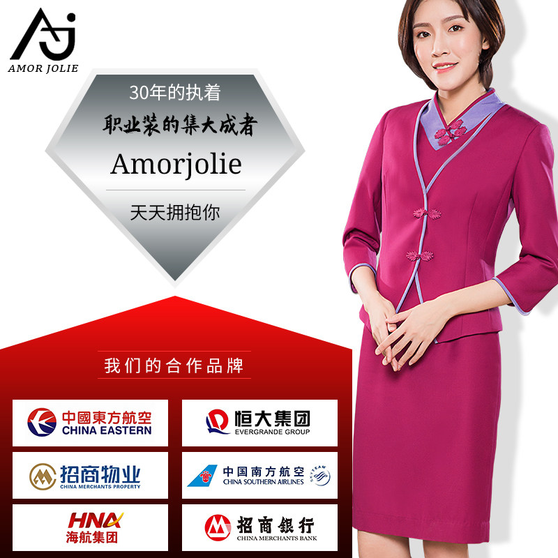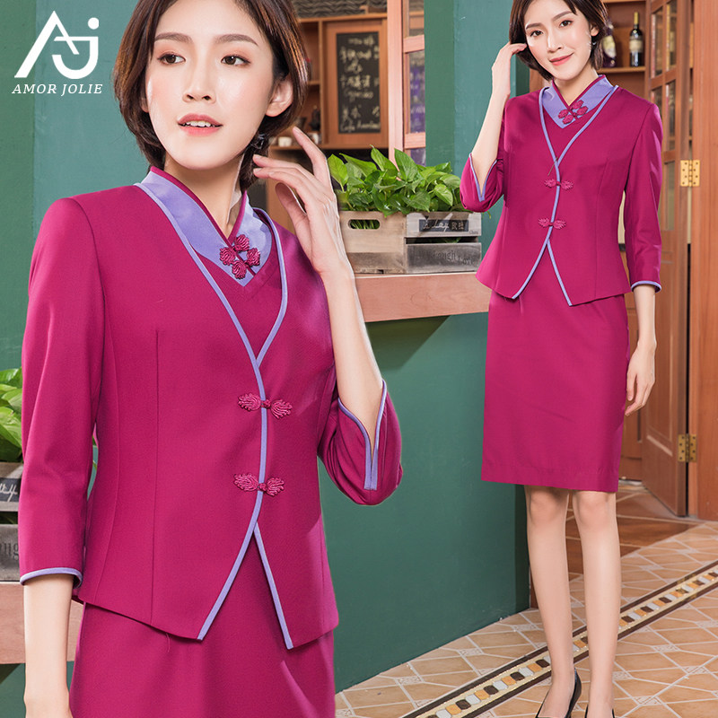 新中式职业装连衣裙女吉祥空姐制服复古盘扣文艺茶服工作服春秋