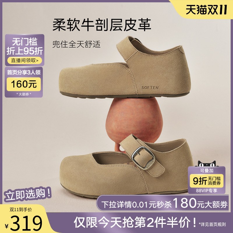 【伯爵慕斯】百思图2025秋季新款真皮玛丽珍勃肯鞋平底浅口女单鞋