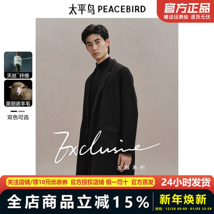 太平鸟男装兰精天丝羊毛大衣中长款24年冬双面呢子外套BAAAE411M
