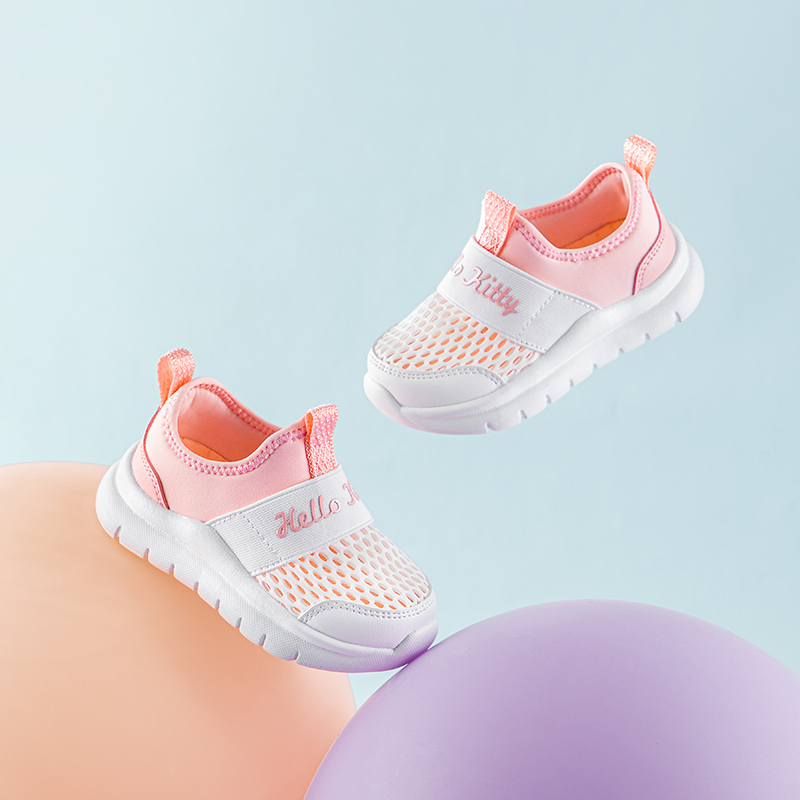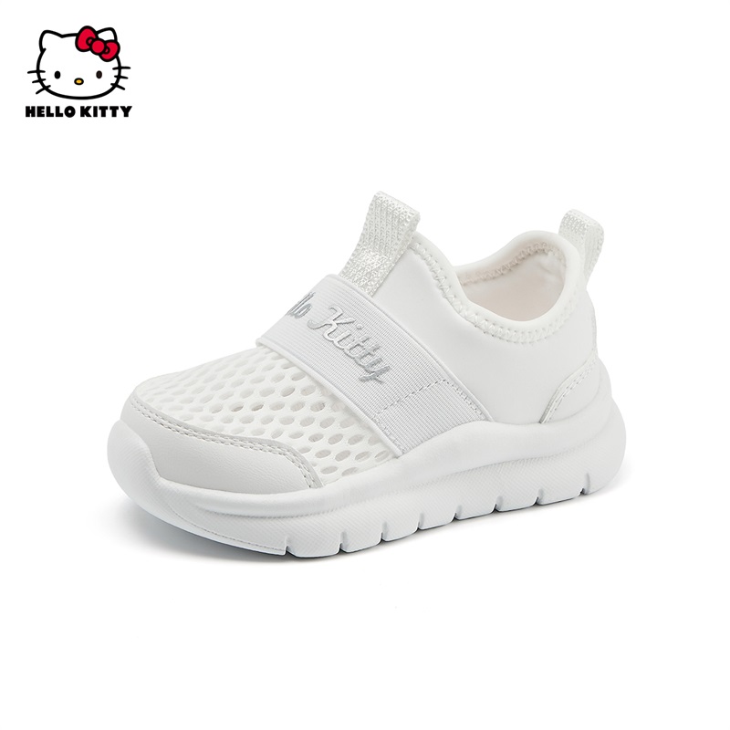 凯蒂猫女童小白鞋春夏季镂空网面透气儿童运动鞋一脚蹬软底休闲鞋