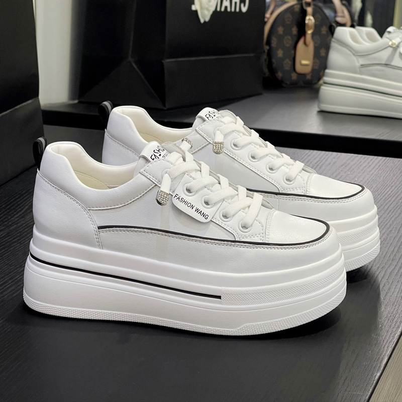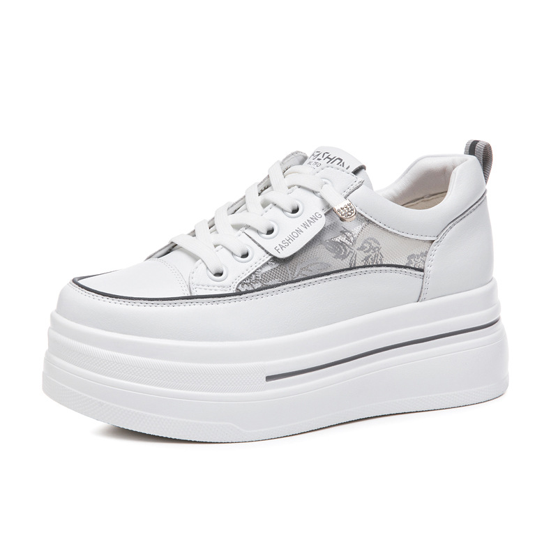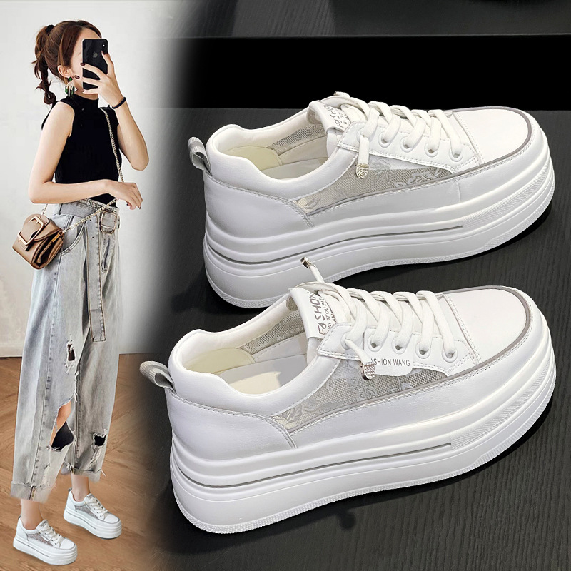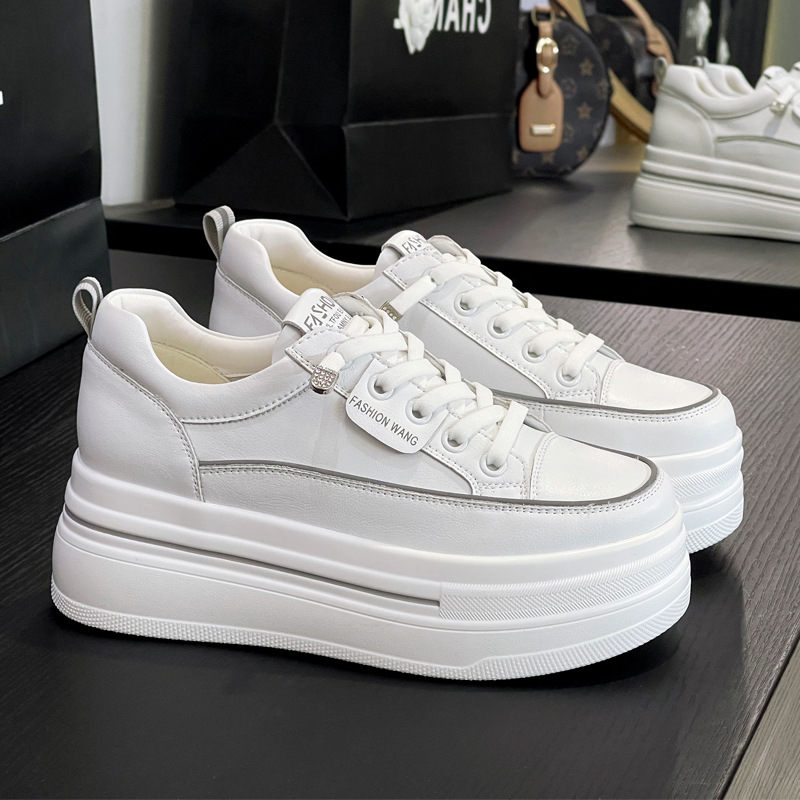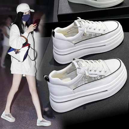 撤柜断码板鞋女内增高CM女鞋松糕厚底秋季真皮百搭透气网面小白鞋