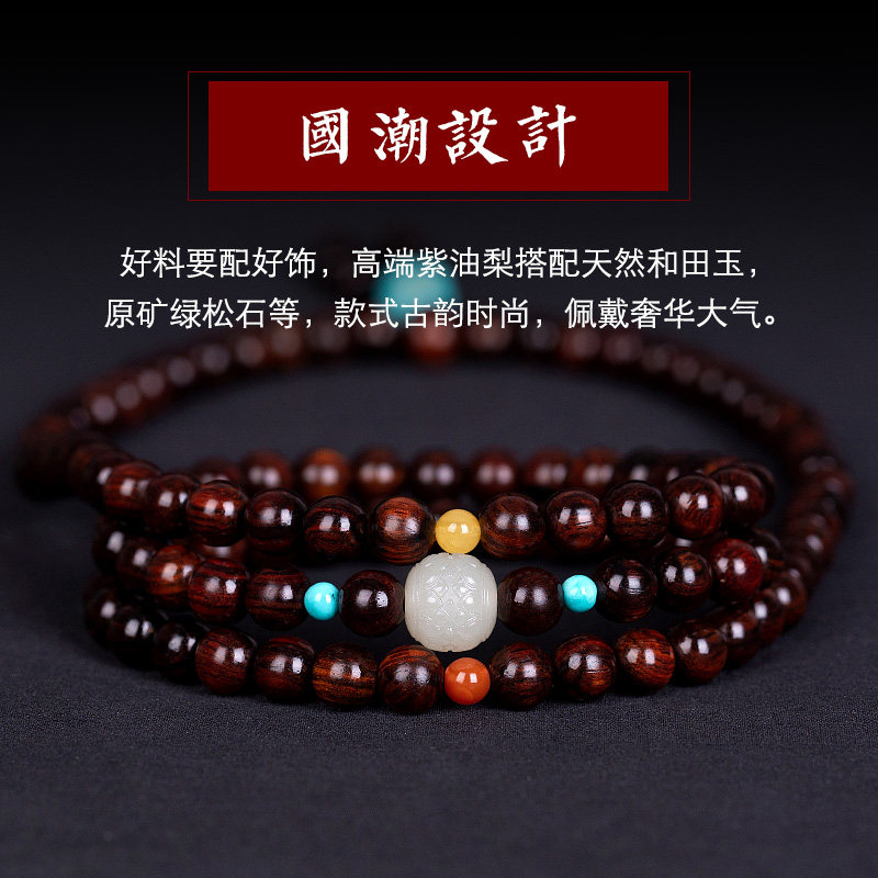 奢华古风紫油梨海黄手串珍贵海南黄花梨手链108颗男女士佛珠 孤品