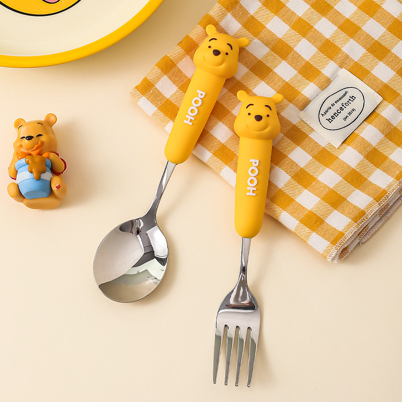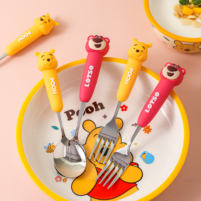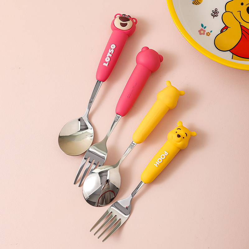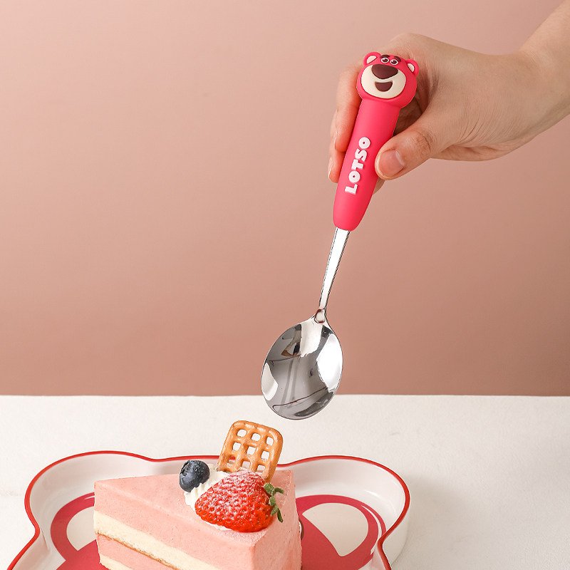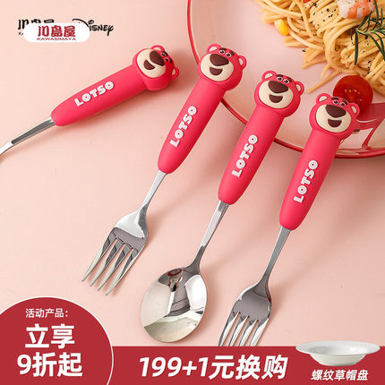 川岛屋迪士尼草莓熊儿童勺子304不锈钢家用高颜值宝宝吃饭勺叉子