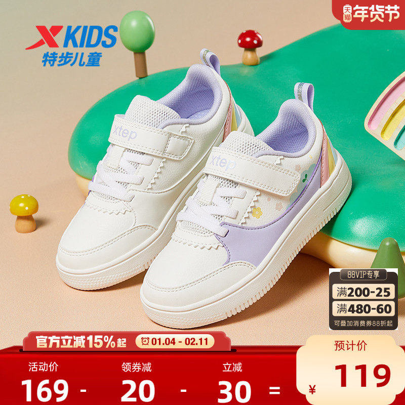 特步儿童女童鞋板鞋秋冬女孩幼儿园休闲鞋运动鞋防滑软底宝宝鞋子