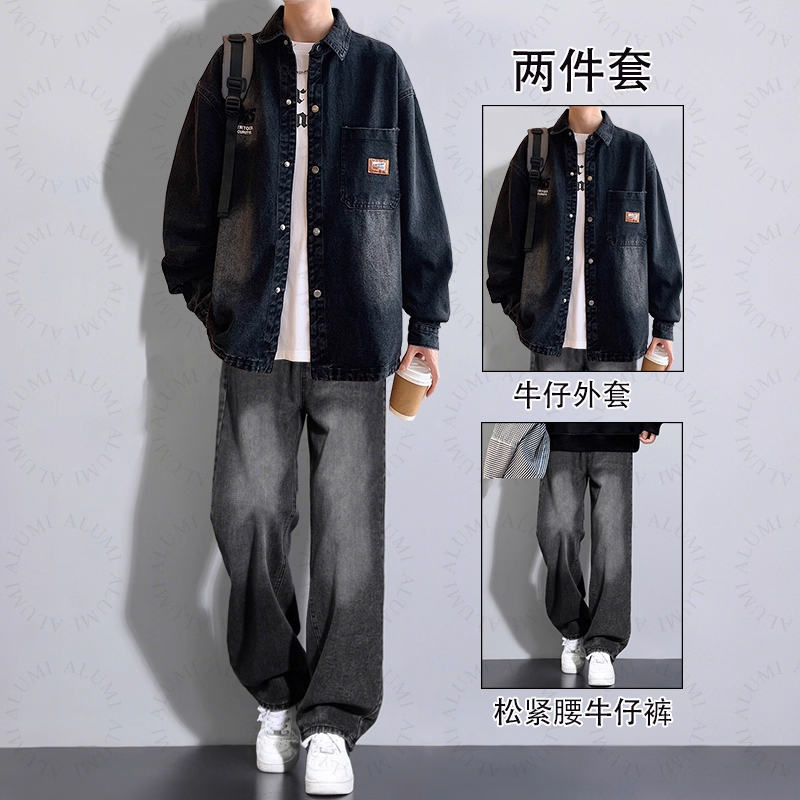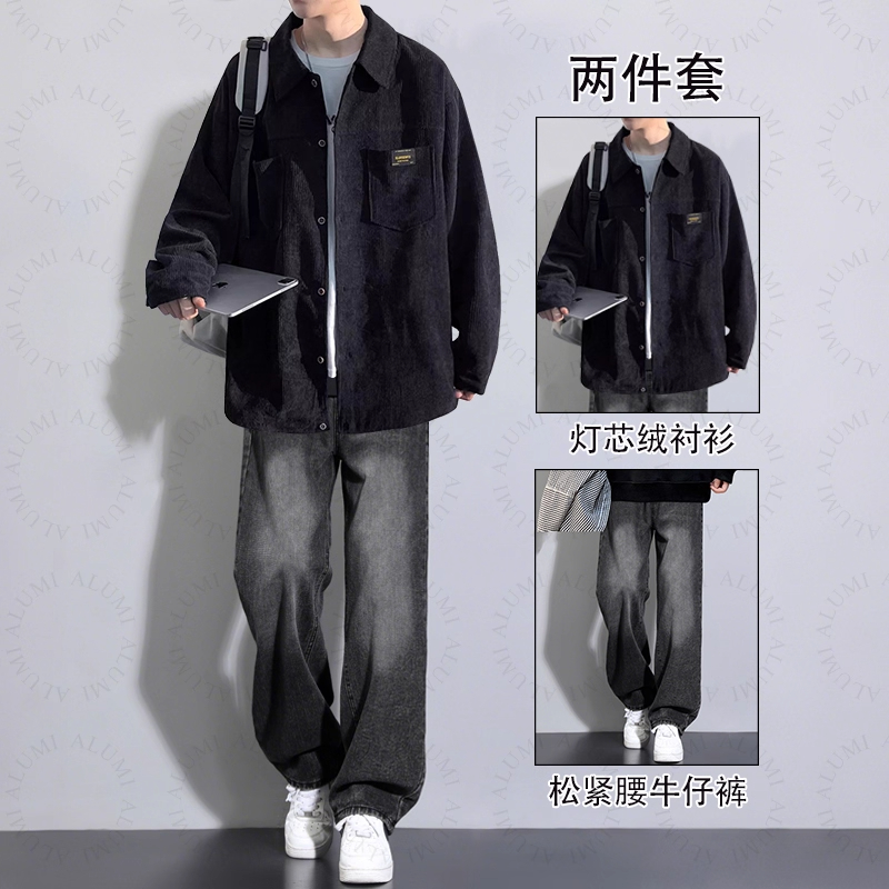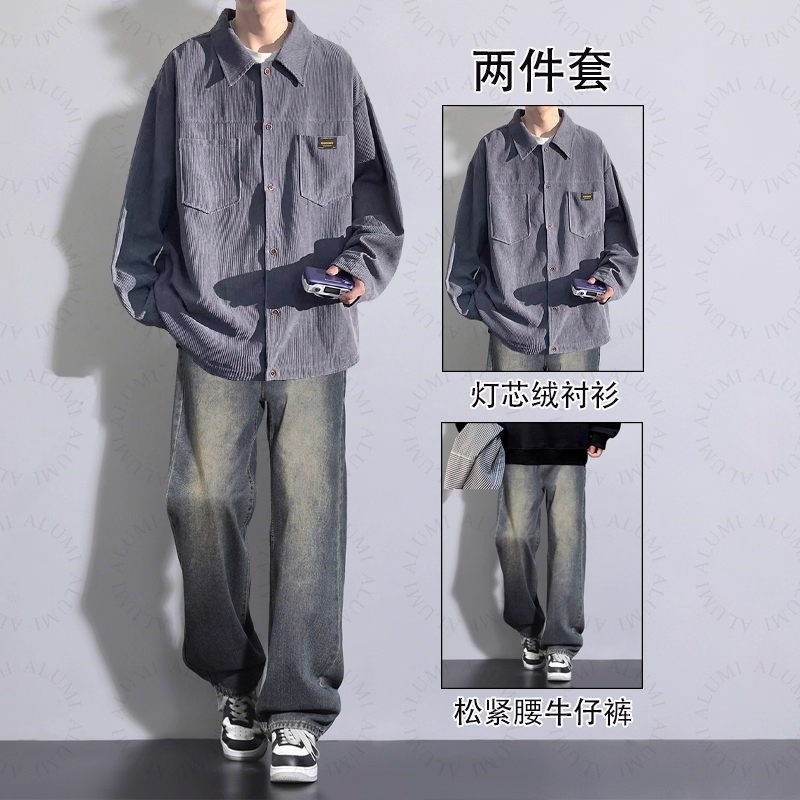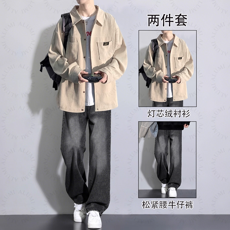 灯芯绒衬衫男春秋季穿搭一整套高级感痞帅男装青少年休闲运动套装