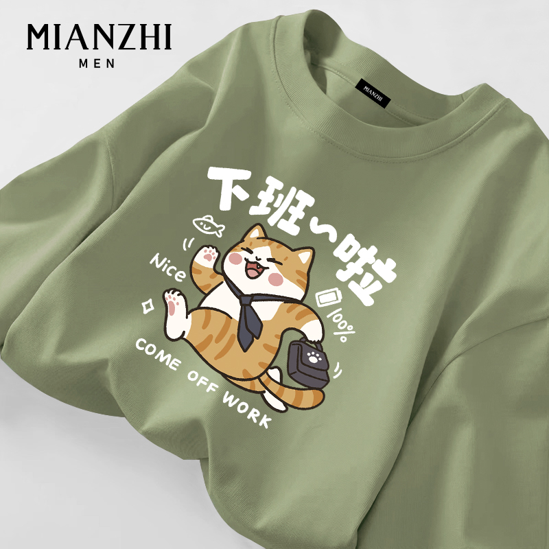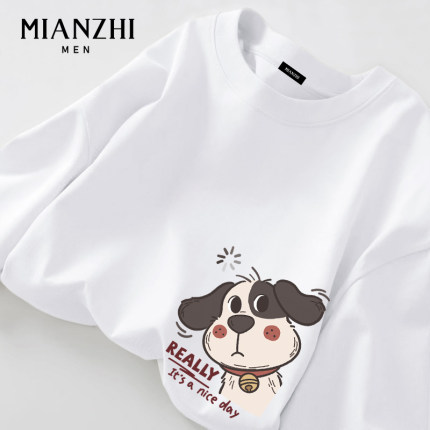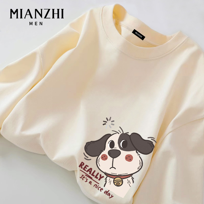 棉致可爱小狗卡通趣味纯棉长袖男款t恤秋冬宽松大码初高中生上衣