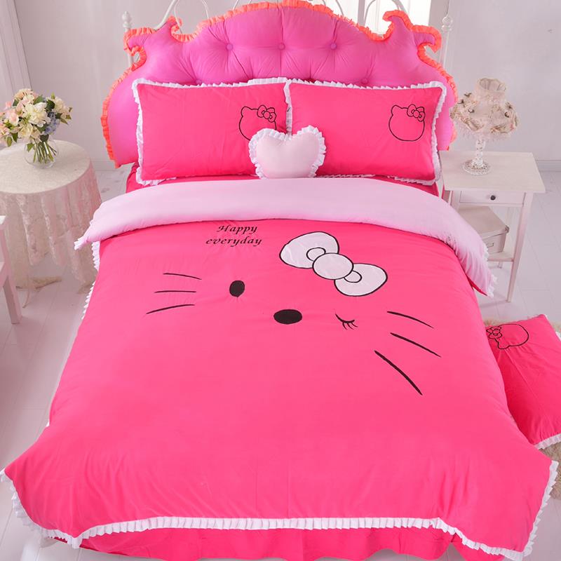 新款网红全棉床裙四黑件套卡通绣花纯棉床被套天鹅女心少公主风上