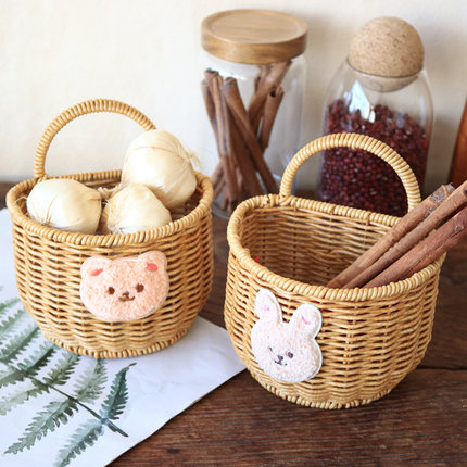 姜蒜收纳筐手提仿藤手工编织厨房生姜蒜头大葱鸡蛋水果壁挂储物盒