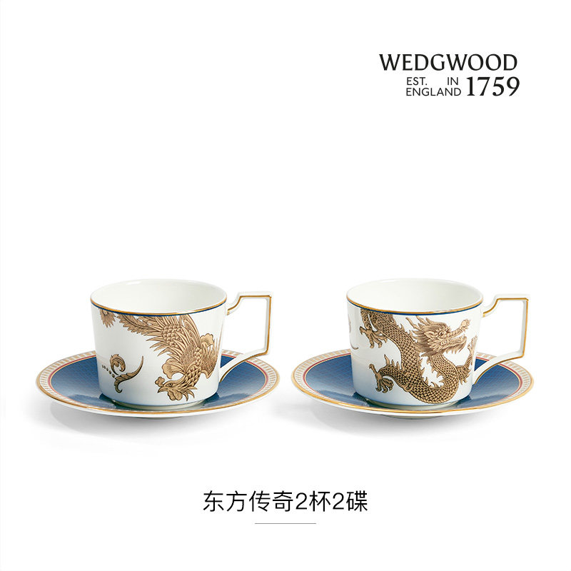 【新年礼物】WEDGWOOD东方传奇龙凤两杯两碟套装欧式骨瓷茶具套装