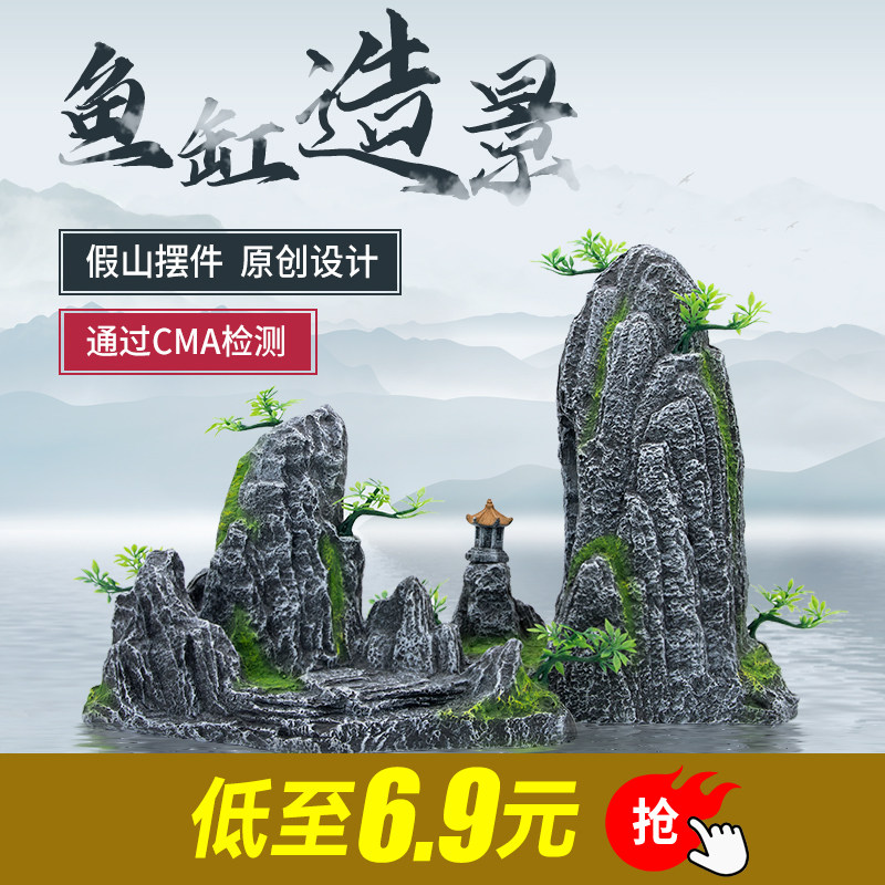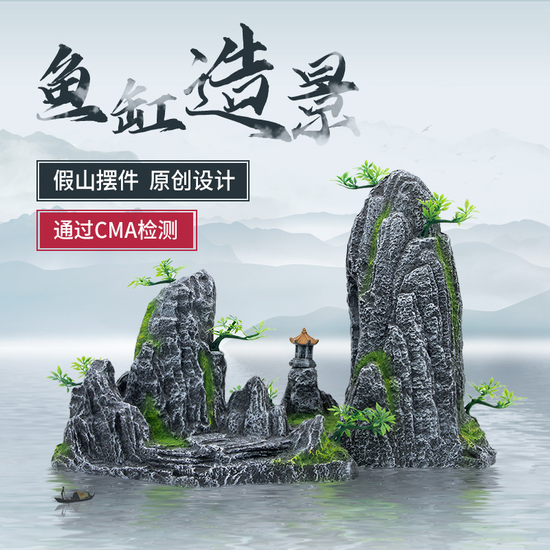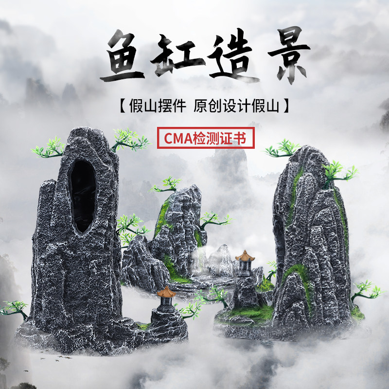 鱼缸造景假山套餐装饰水草石头小摆件小型水族布景内饰躲避洞全套