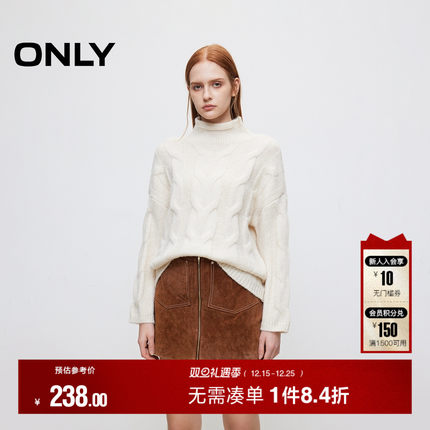 ONLY冬季优雅气质纯色宽松高领毛衣针织衫女|124413032