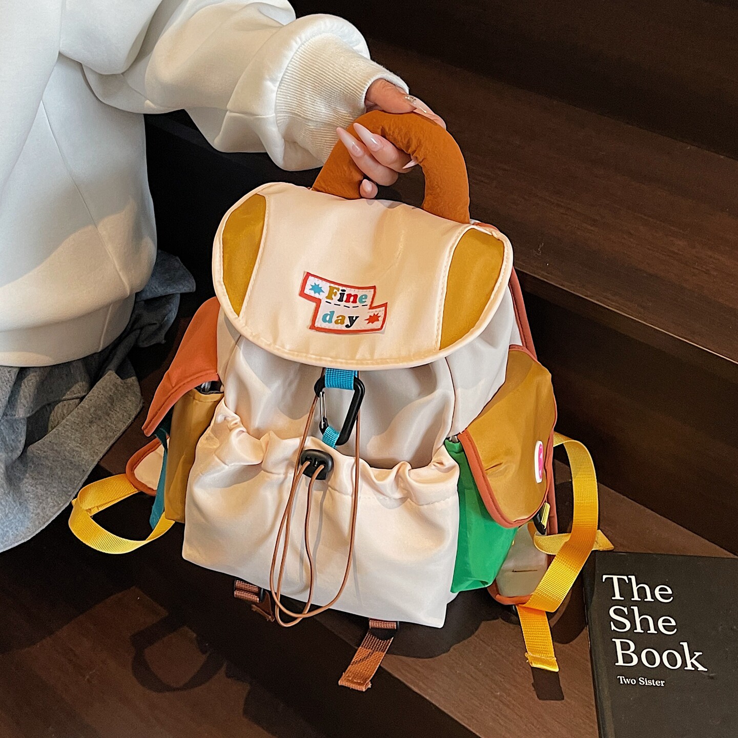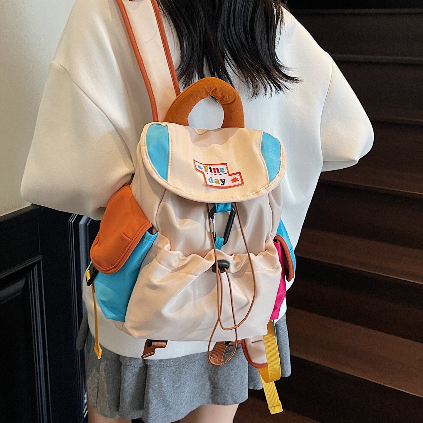 撞色尼龙布双肩包女2026新款时尚休闲学生通勤书包轻便旅行登山包