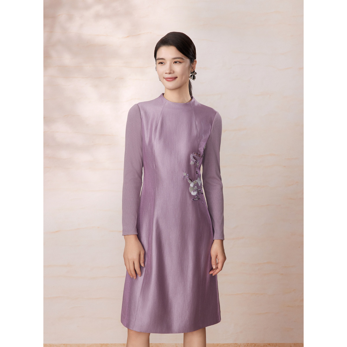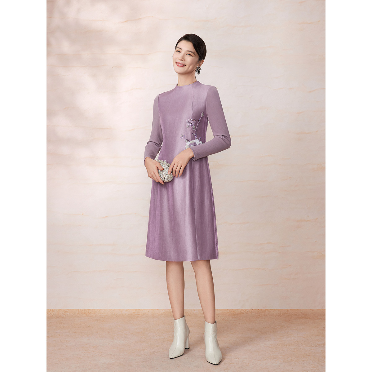 【东方礼服裙】 BBLLUUEE/粉蓝衣橱2025冬装新款芍药刺绣连衣裙女