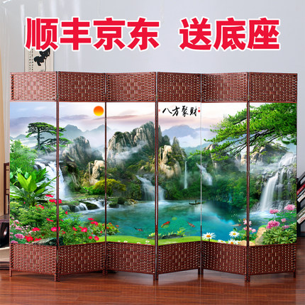 新式中式藤编屏风隔断办公室卧室折叠移动挡板挡风挡床客厅餐饮