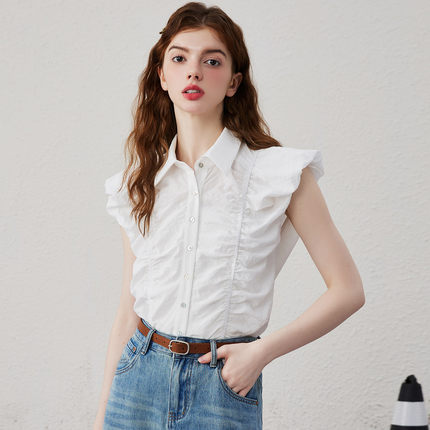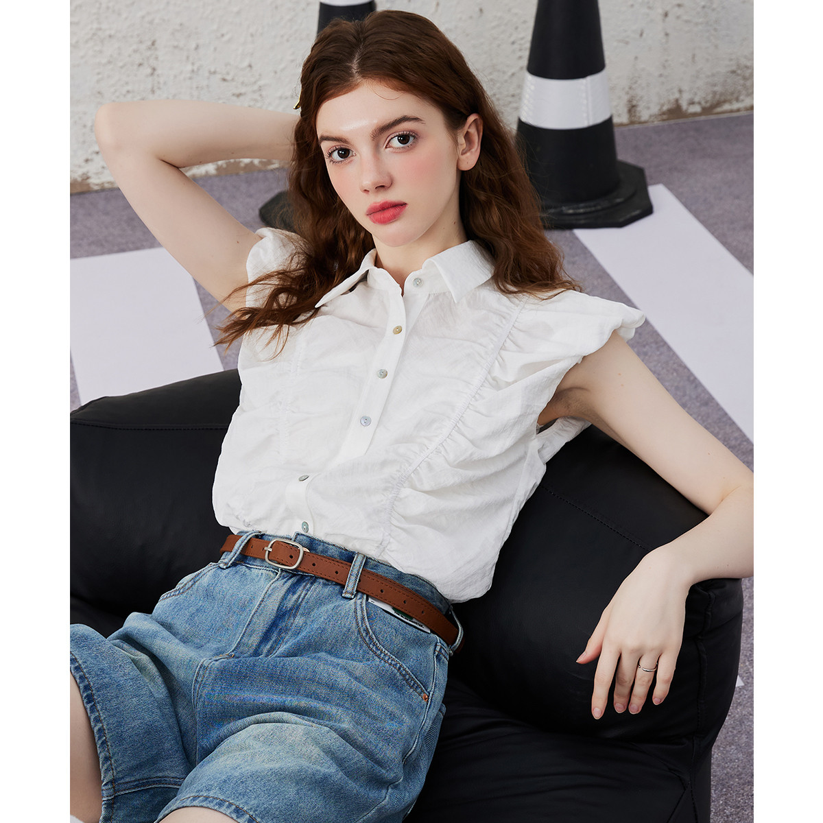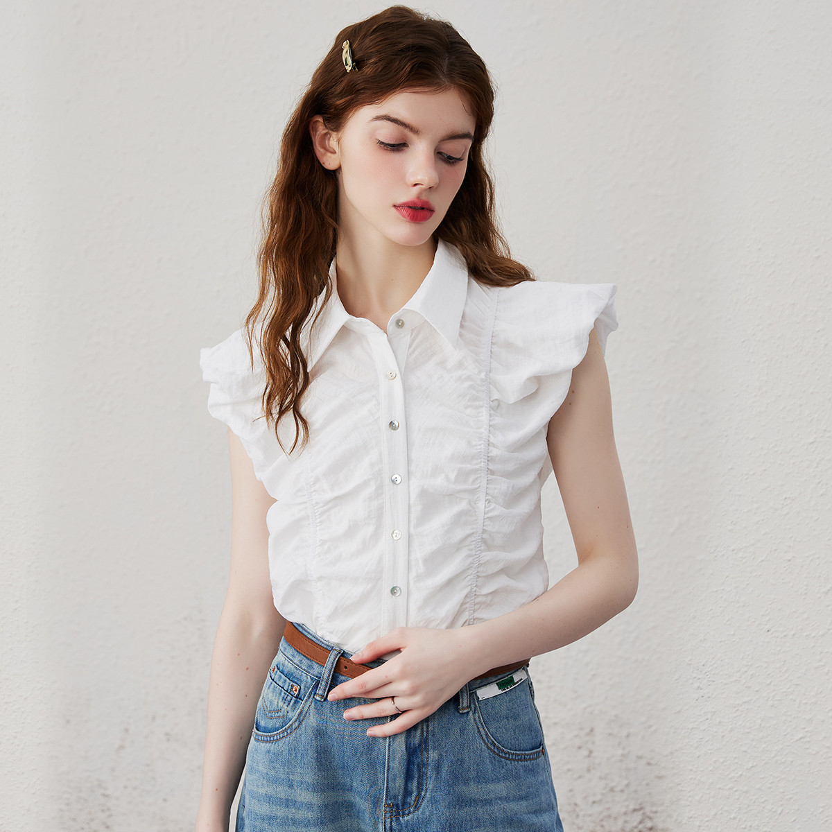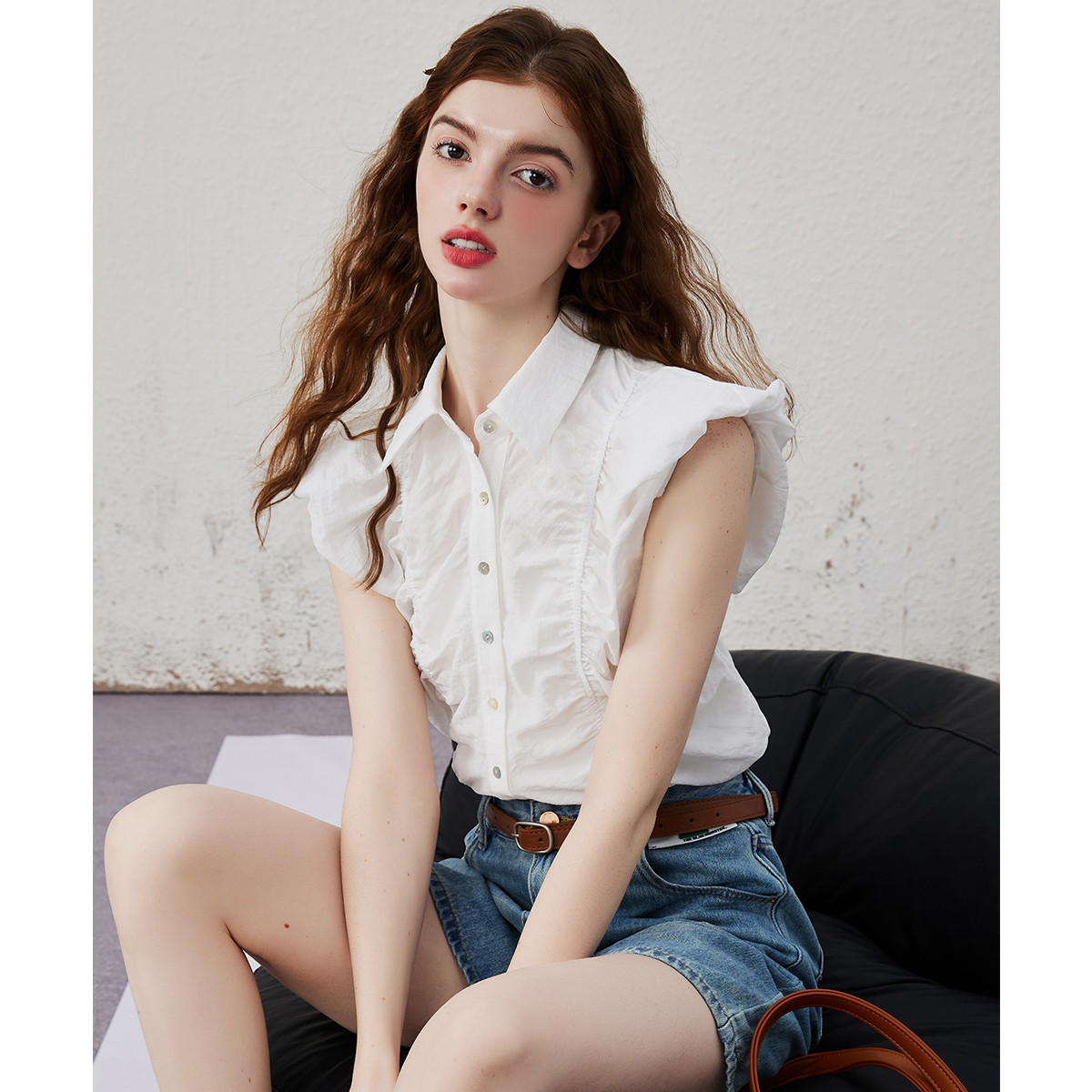 a02时尚褶皱设计感显瘦纯色小衫夏季休闲泡泡袖气质女式衬衫