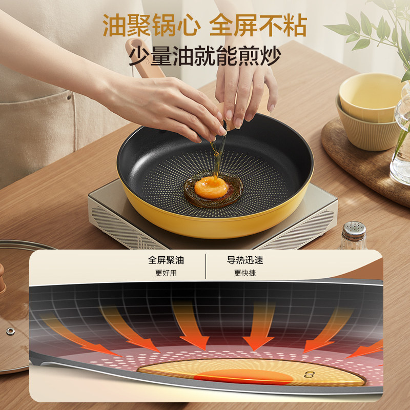 苏泊尔平底锅不粘锅家用聚油煎锅饼蛋牛排煎炒锅电磁炉燃气灶通用