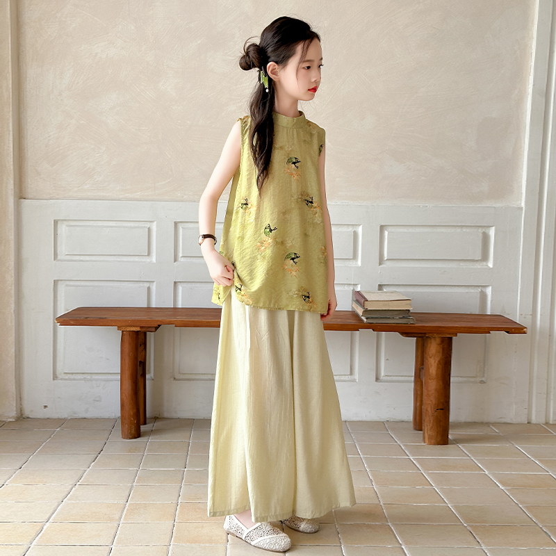 女童夏季汉服套装2025新款女孩大童新中式国风唐装儿童夏装两件套