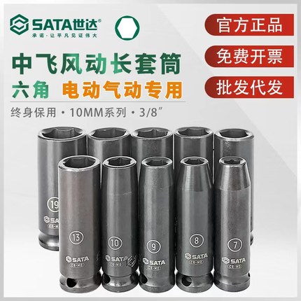 世达风动长套筒中飞10MM电动气动扳手风炮专用加长套头3/8系列