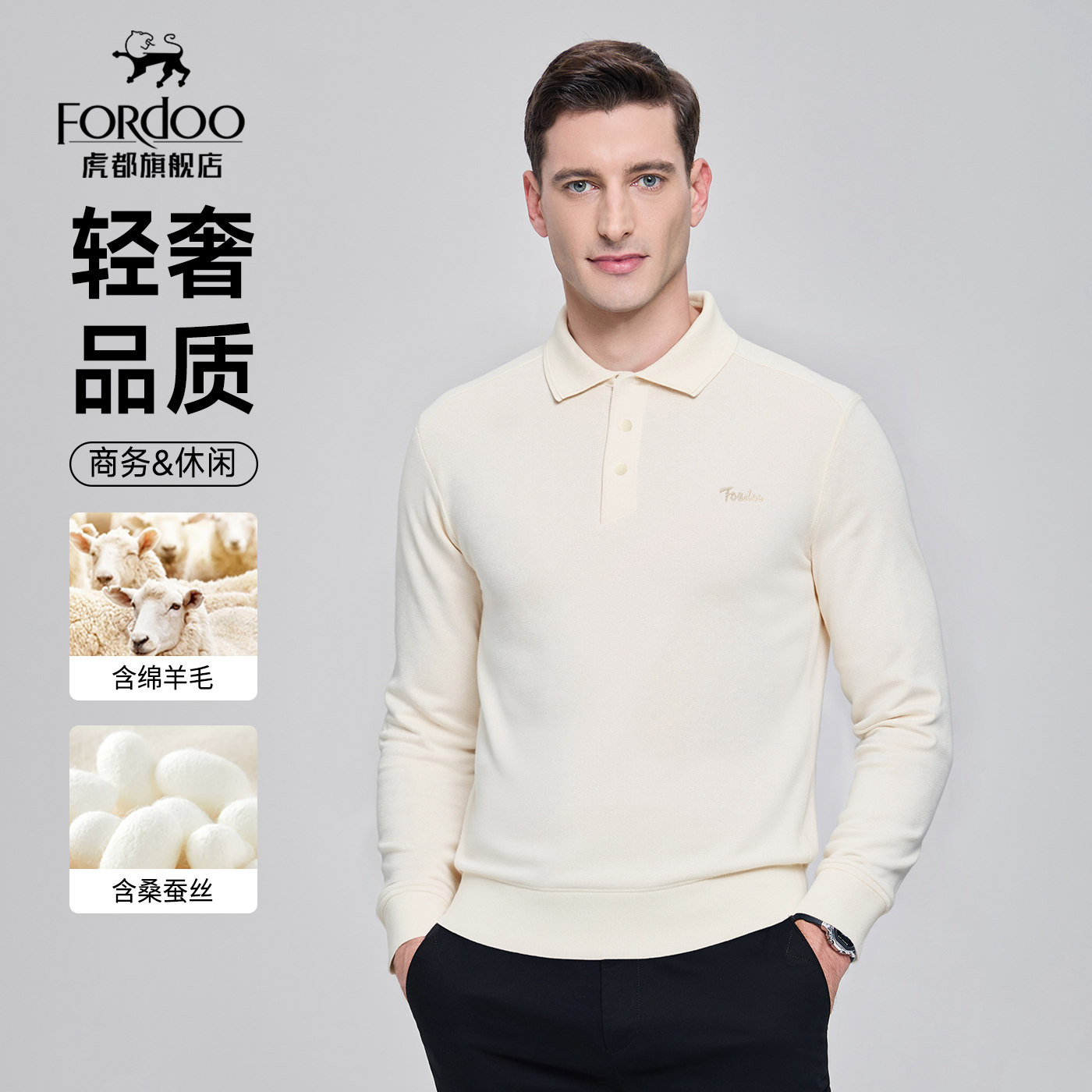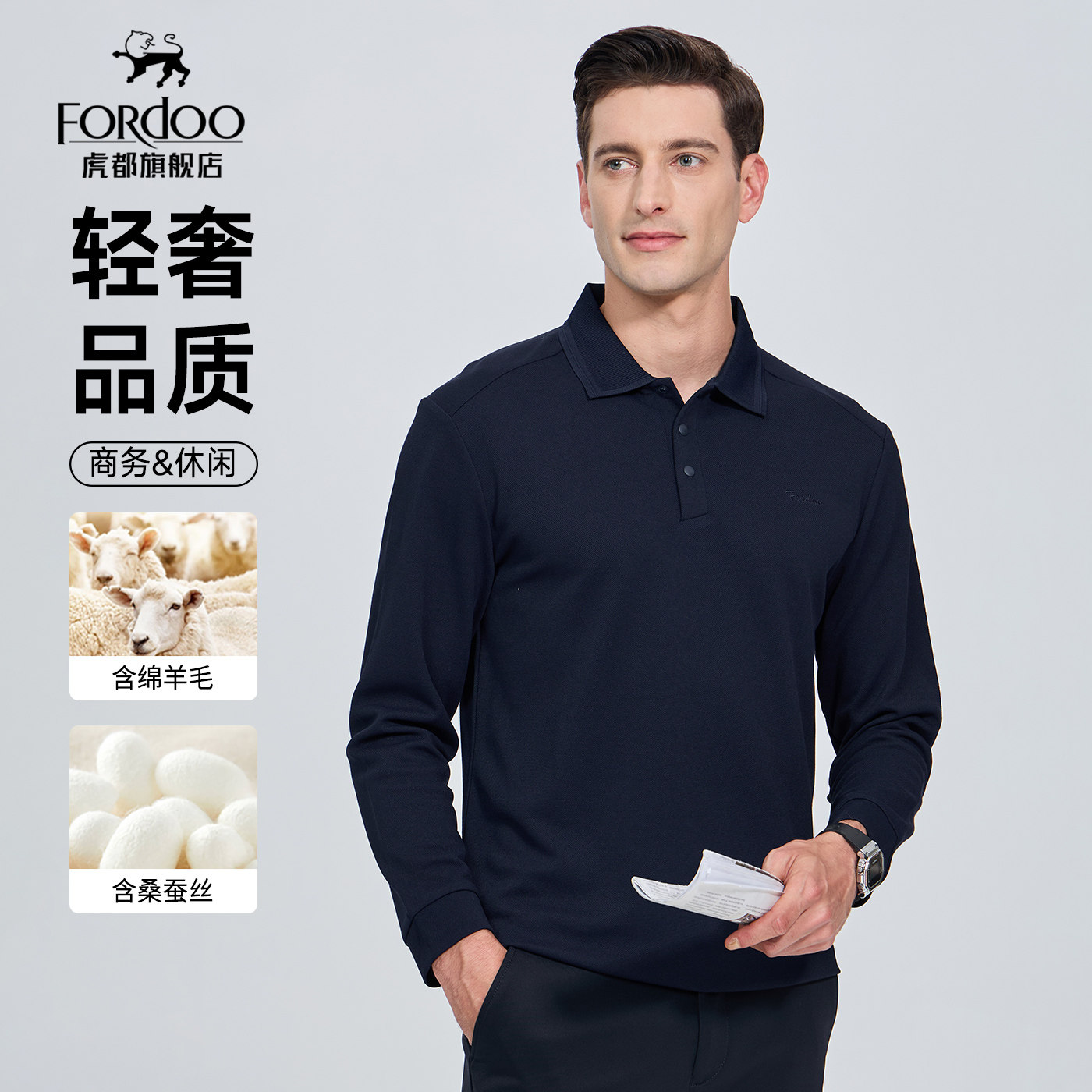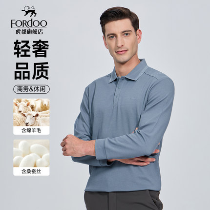 【含绵羊毛&桑蚕丝】虎都秋春男士POLO衫轻奢商务翻领长袖衬衫T恤