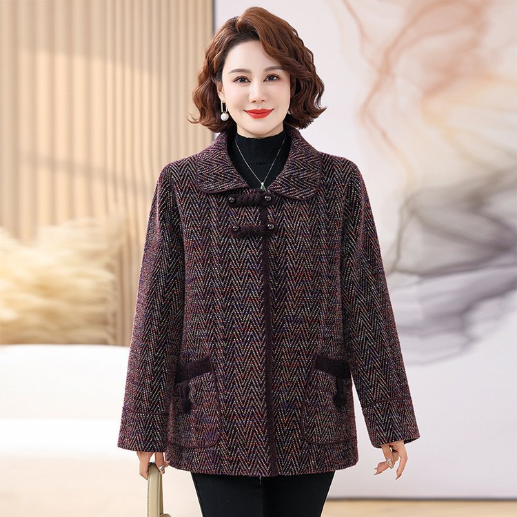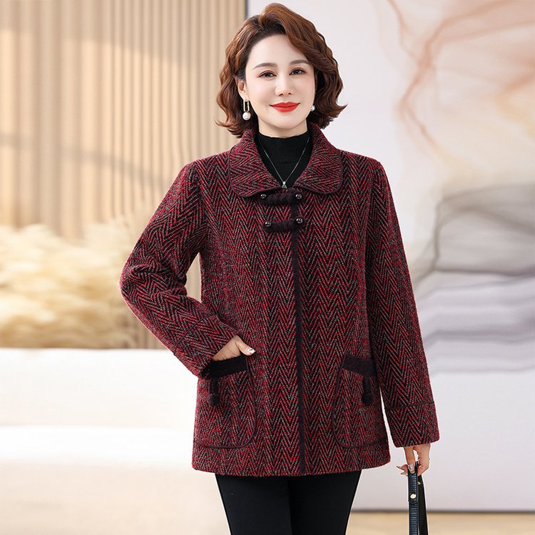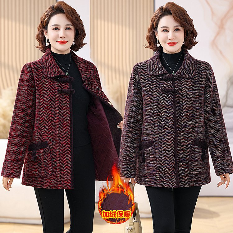 妈妈冬装外套2025新款貂绒棉衣中老年女装加绒加厚秋冬毛呢大衣
