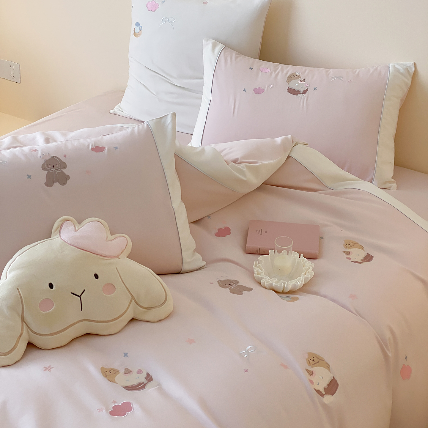 卡通少女心100S全棉磨毛四件套纯棉儿童被套公主风床上用品秋冬季