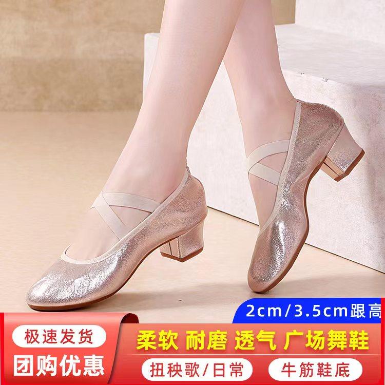 银色舞蹈鞋跳舞鞋软底女士透气成人防滑女软底成人广场舞女鞋四季