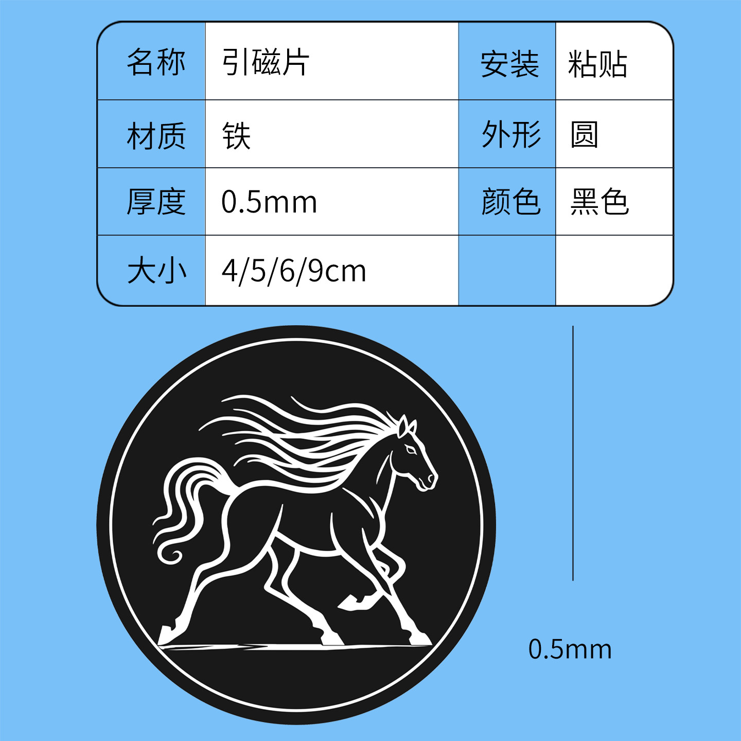 磁吸车载支架引磁片贴片手机支架磁力片创意马圆形4/5/6/9cm磁吸汽车散热器通用吸盘磁铁片带背贴粘贴式铁片
