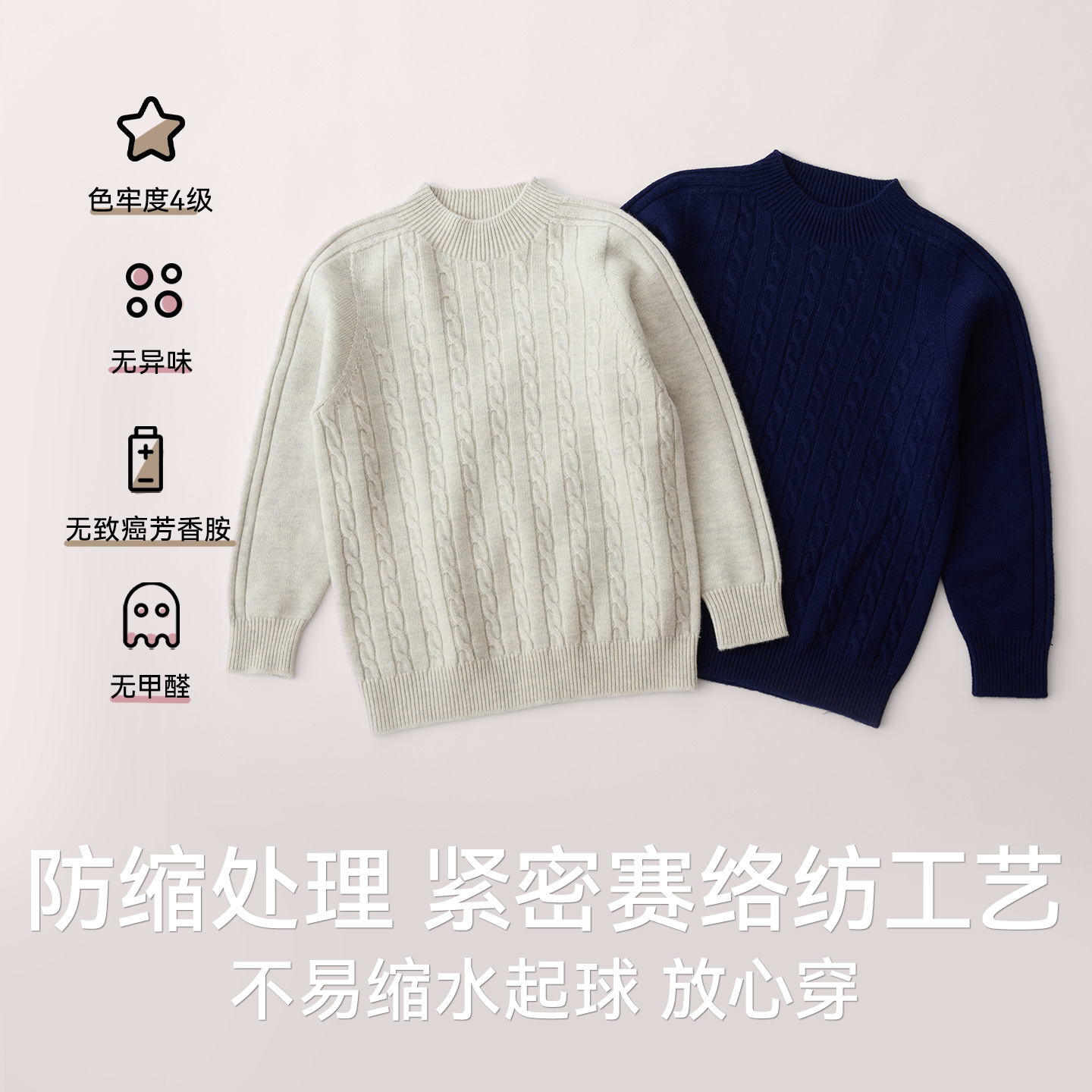 儿童100%纯羊毛衫套头圆领