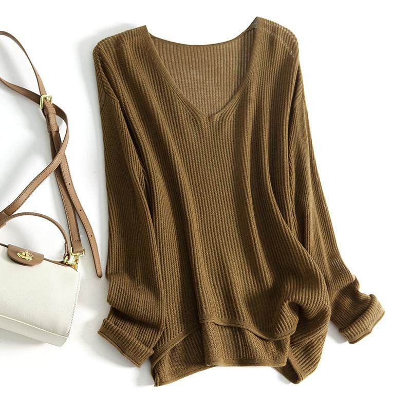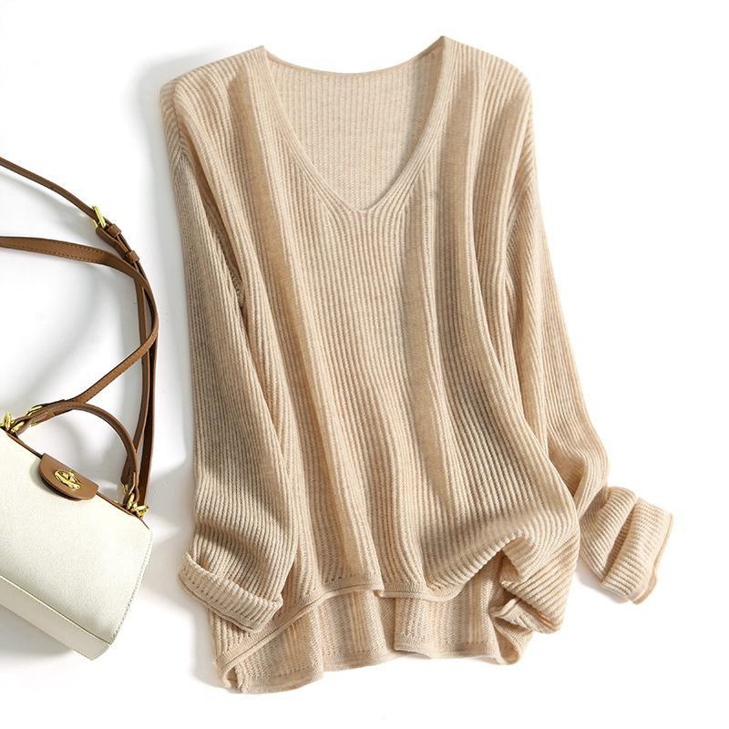 秋冬针织衫V领宽松长袖遮肚毛衣