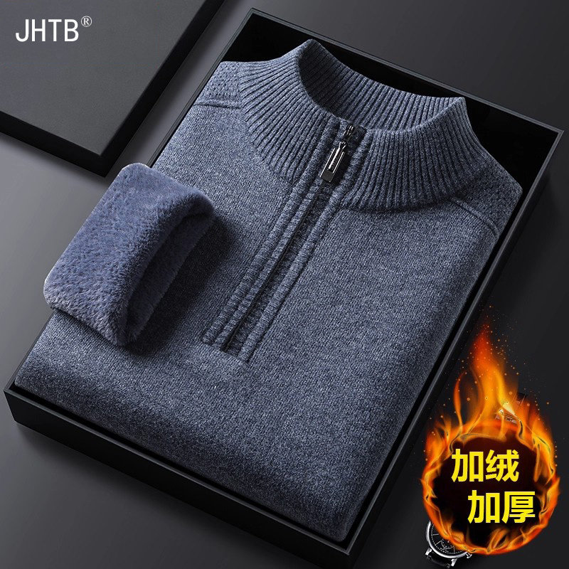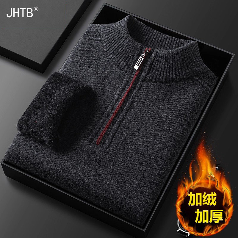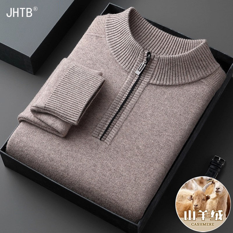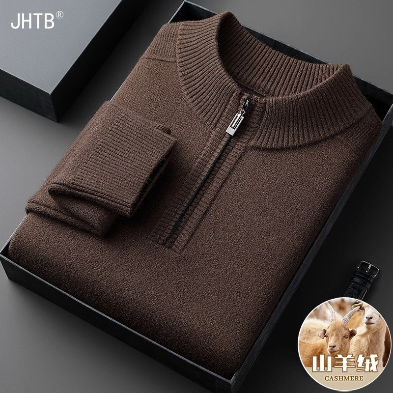 鄂尔多斯市羊绒衫男100%山羊绒半高拉链领针织毛衣中年加厚羊毛衫