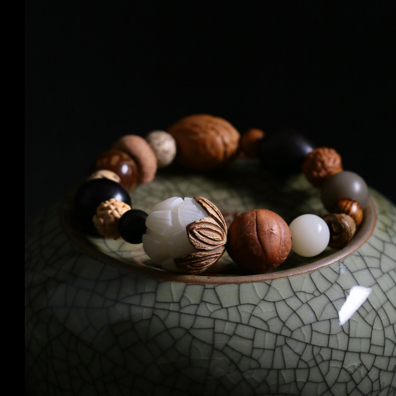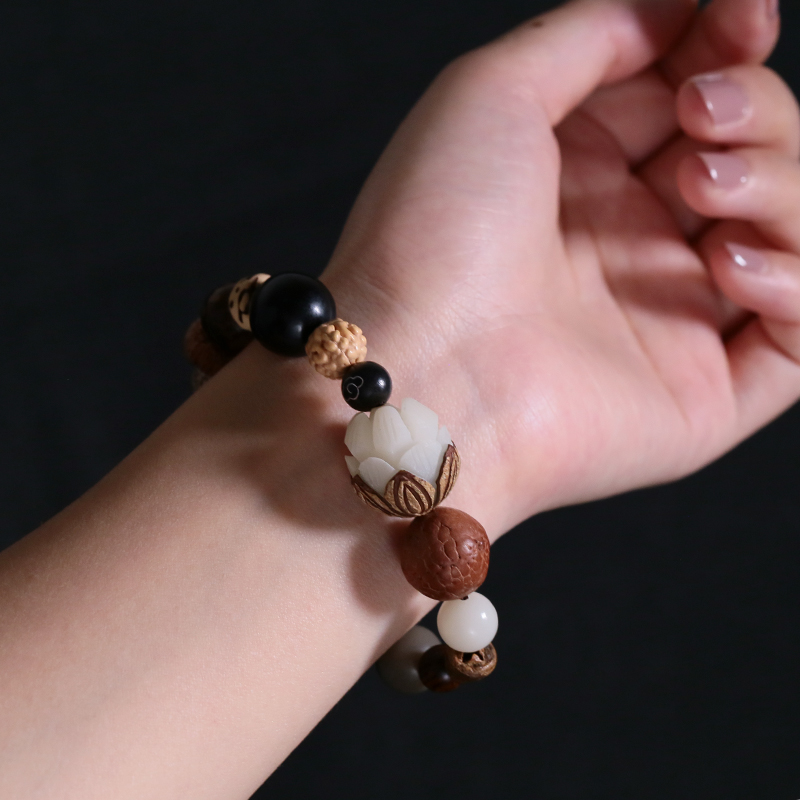 菩提子手串十八子天然多宝莲花男女星月金刚菩提文玩佛珠手链配饰