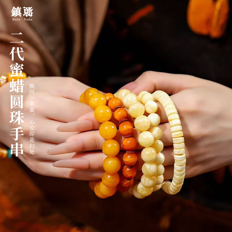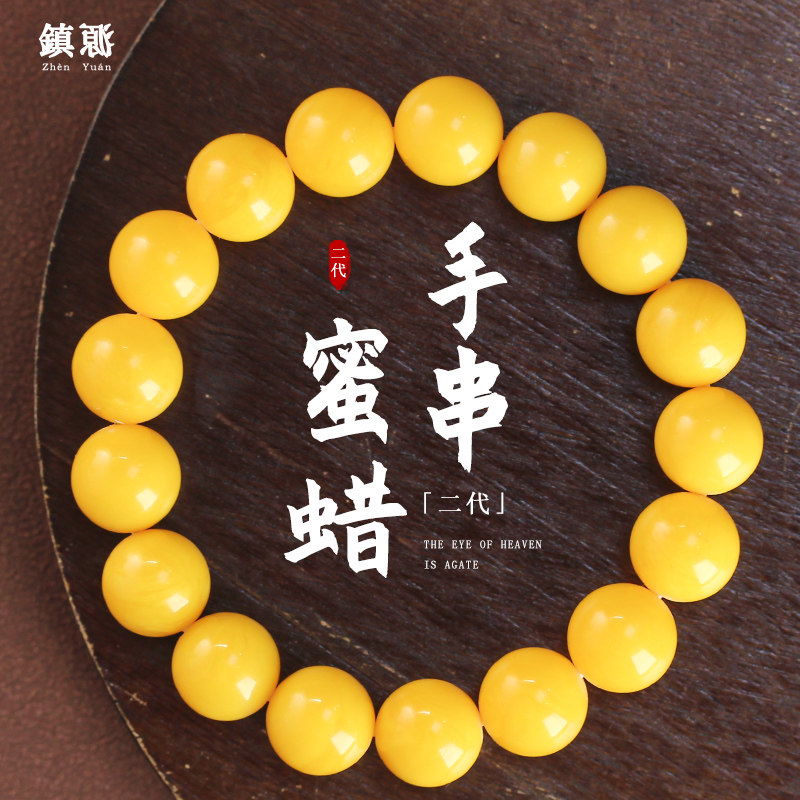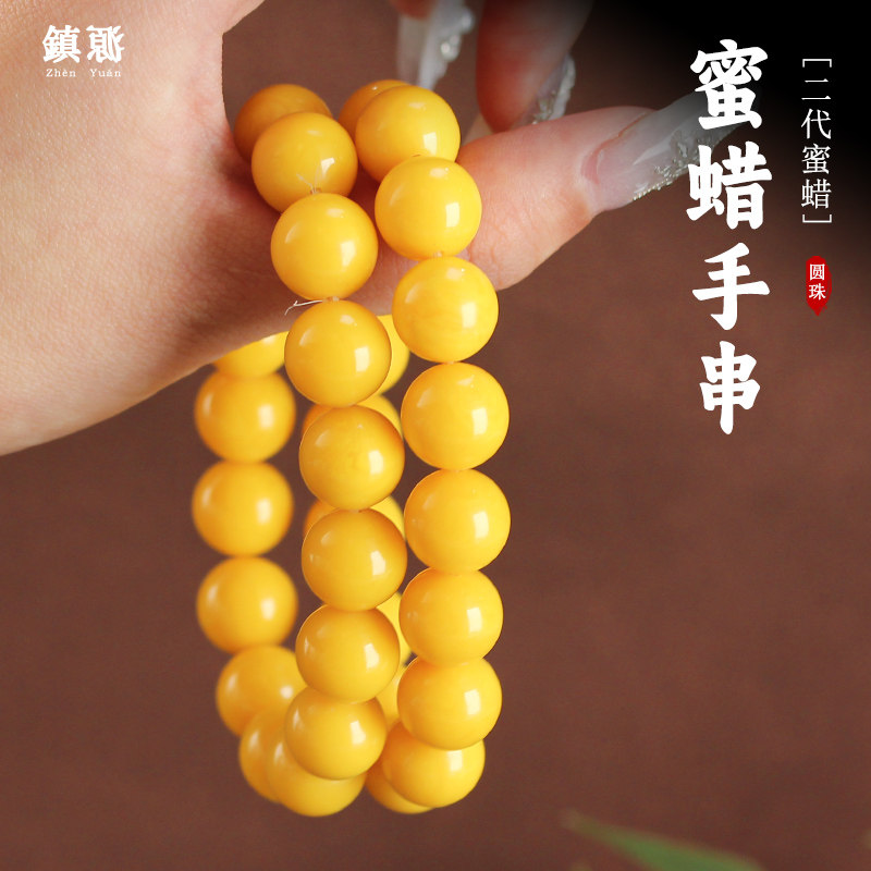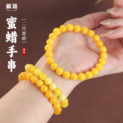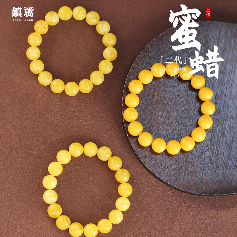 琥珀仿蜜蜡手串圆珠手链白花鸡油黄老蜜黄单圈手串文玩diy男女