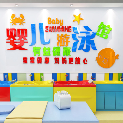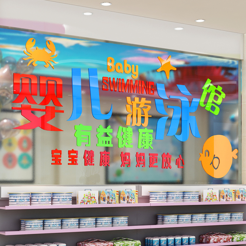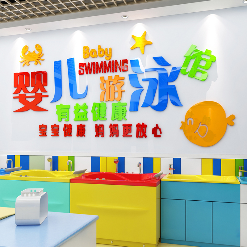 宝宝婴儿游泳馆墙面装饰3d立体墙贴画母婴店墙壁布置卡通防水贴纸