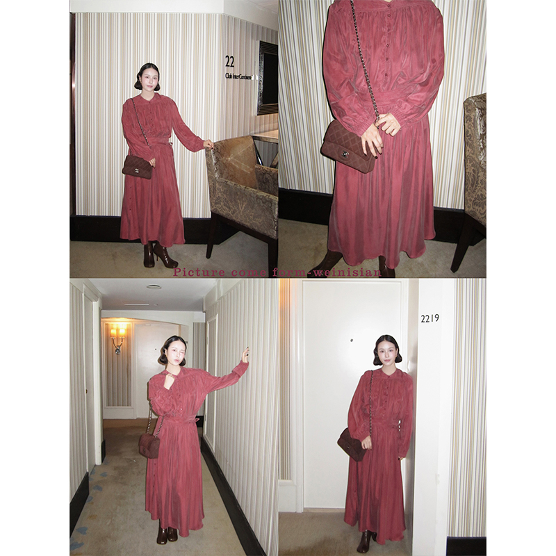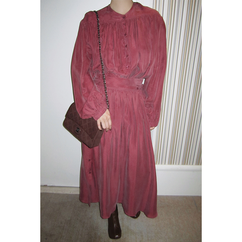 朱小姐小众设计铜氨丝套装女秋季早春衬衫宽松褶皱衬衣裙子两件套