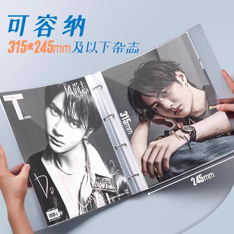 杂志透明切页册A4加宽T杂时尚先生风度尼龙加大款收藏夹日韩杂志收纳册收藏夹宽版一宫格内页时尚芭莎海报