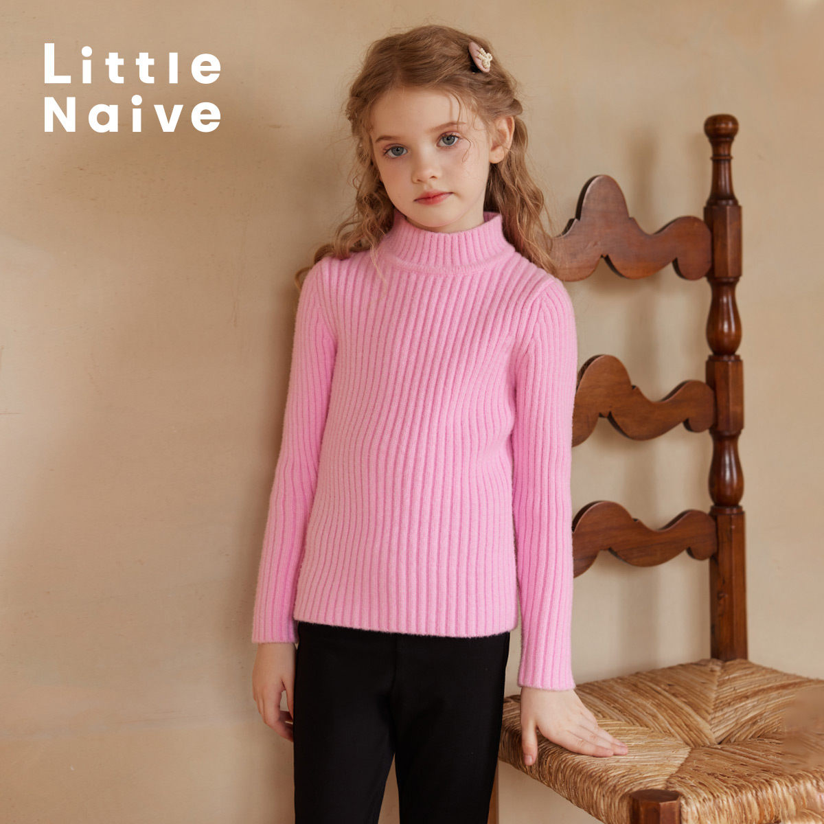LittleNaive 冬季女童半高领毛衣纯色打底衫加厚保暖儿童针织衫