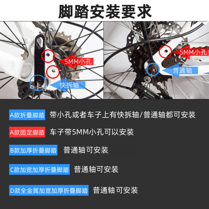 自行车后座脚踏板通用山地电动车可折叠后轮载人踩脚蹬子单车配件