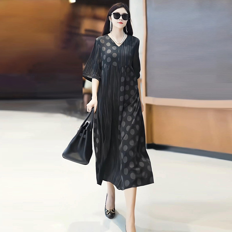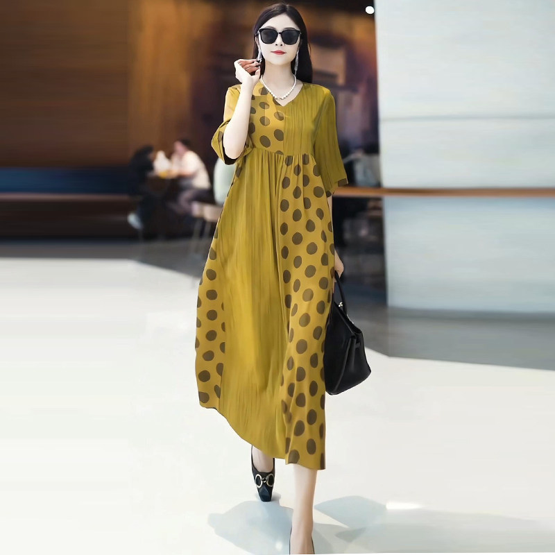 文艺复古轻奢大码真丝连衣裙2025夏季新款洋气减龄贵夫人气质长裙