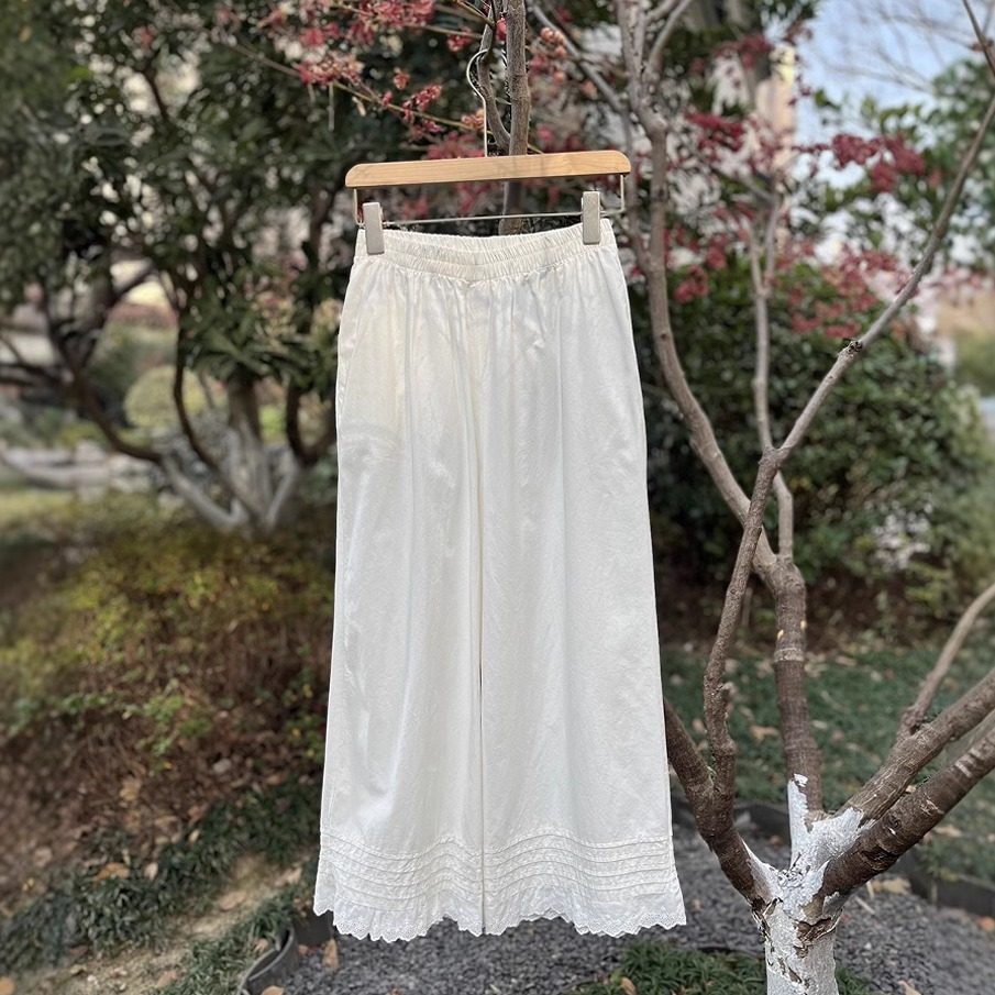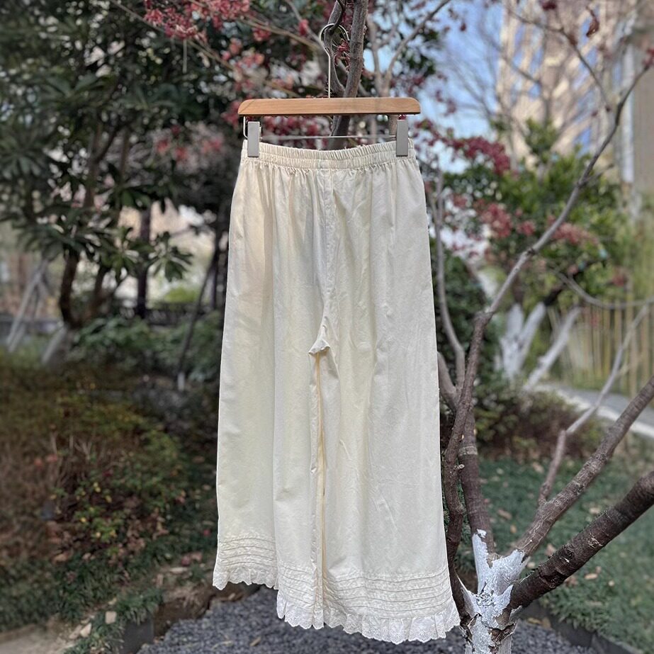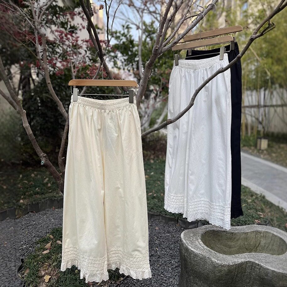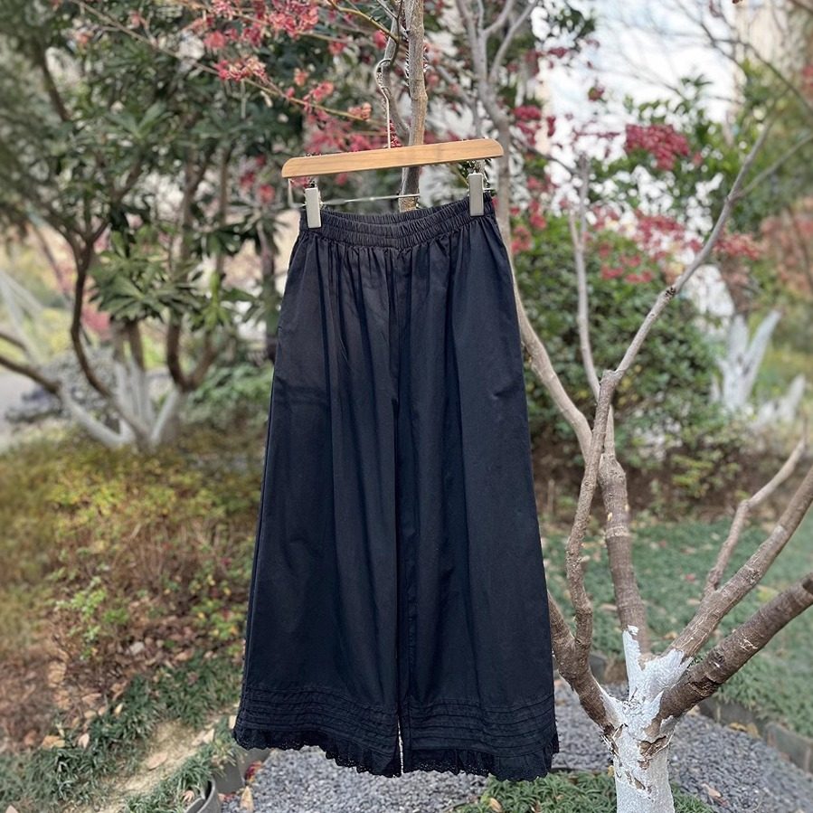 松紧腰森系9分阔腿裤子女