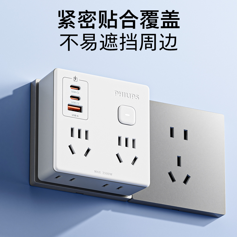飞利浦一转多扩展插座无线转换器多功能插线宿舍家用usb智能30W
