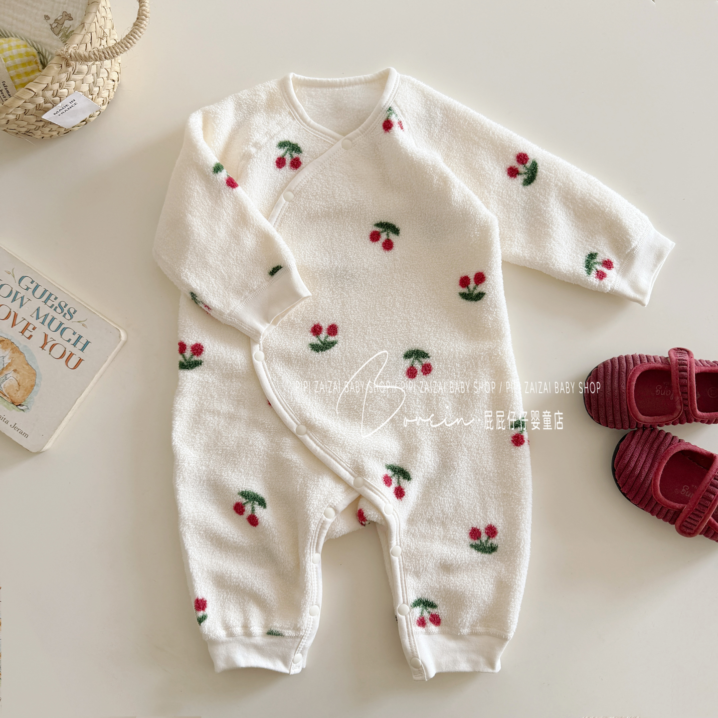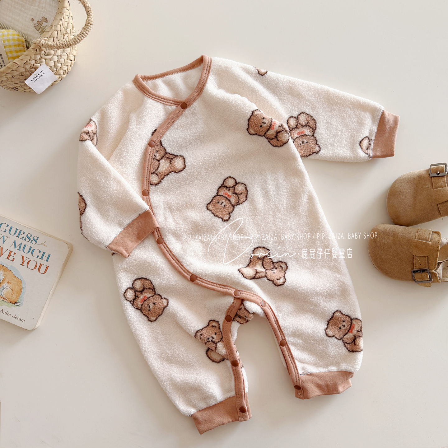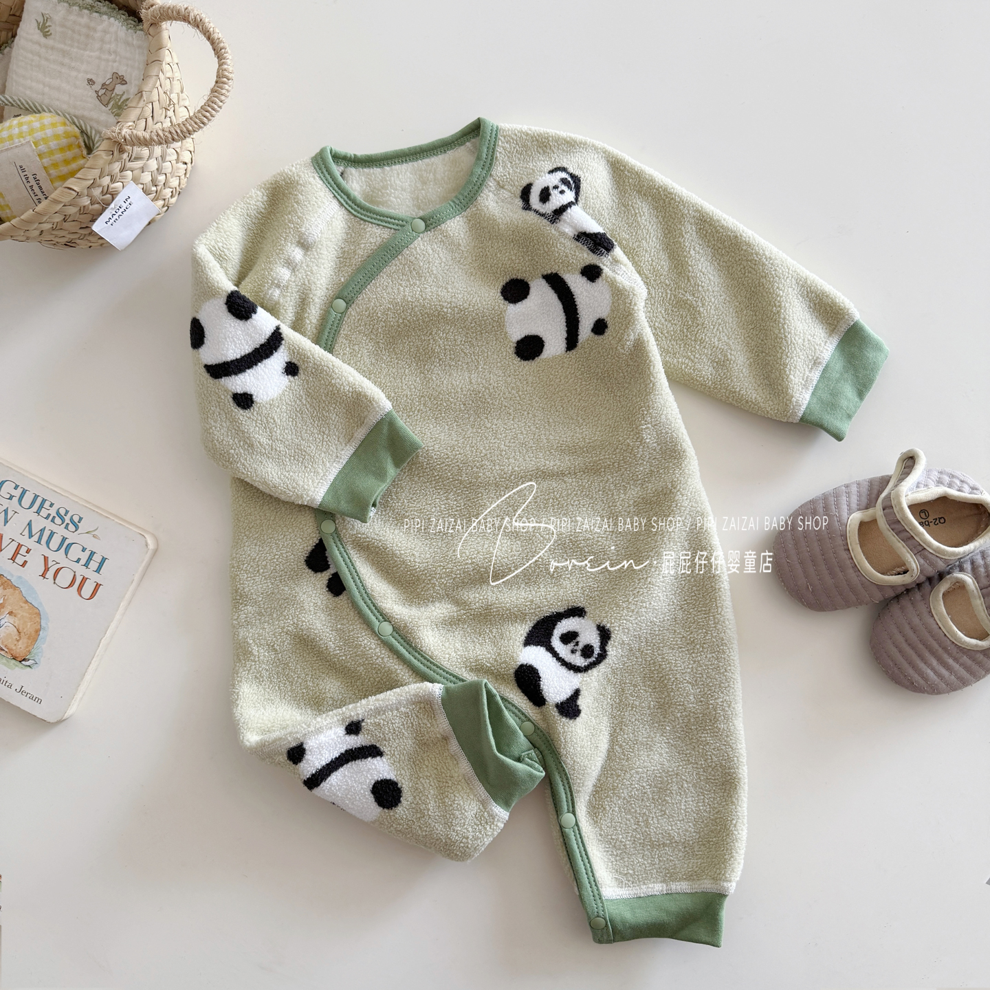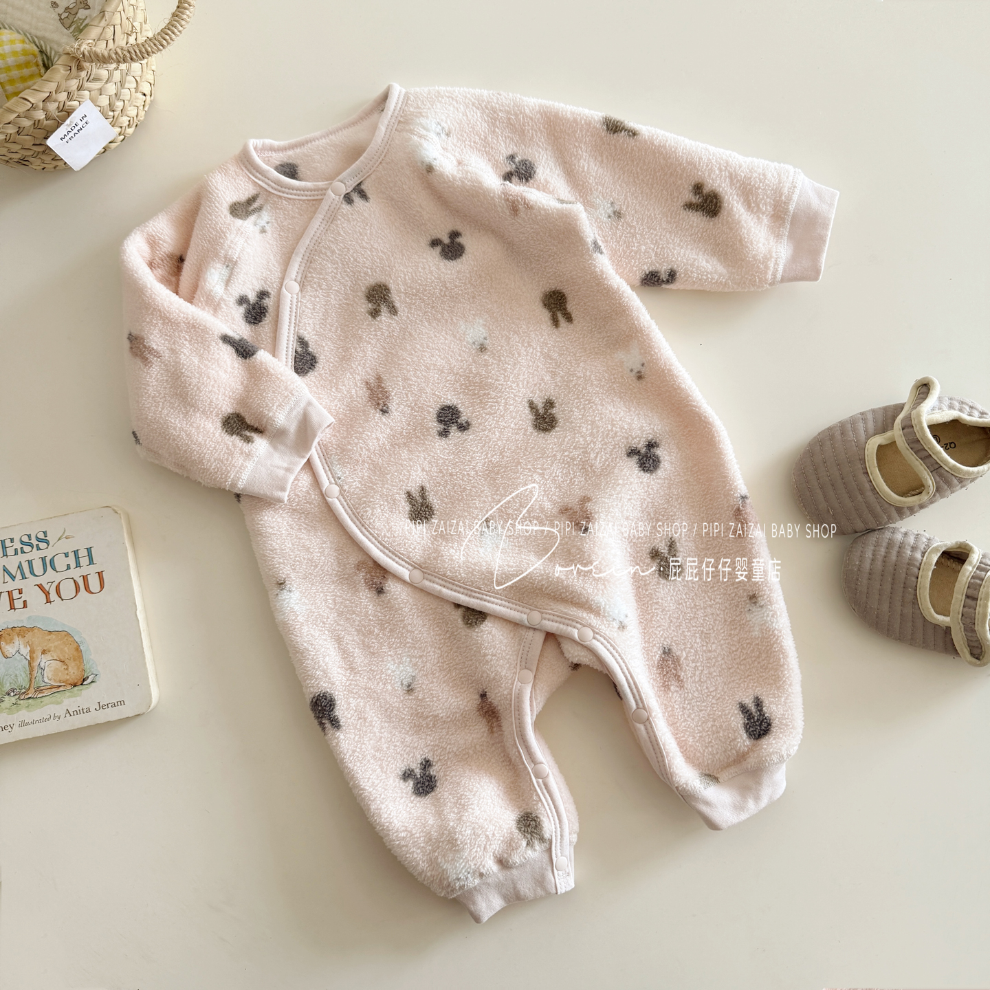 婴童保暖连体衣春秋冬季加绒哈衣男女宝宝暖绒外出服婴儿无骨爬服