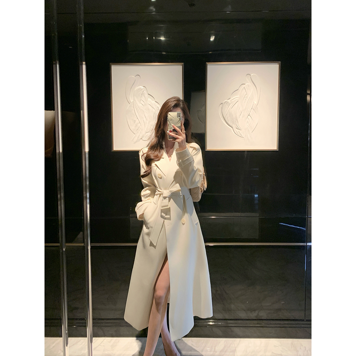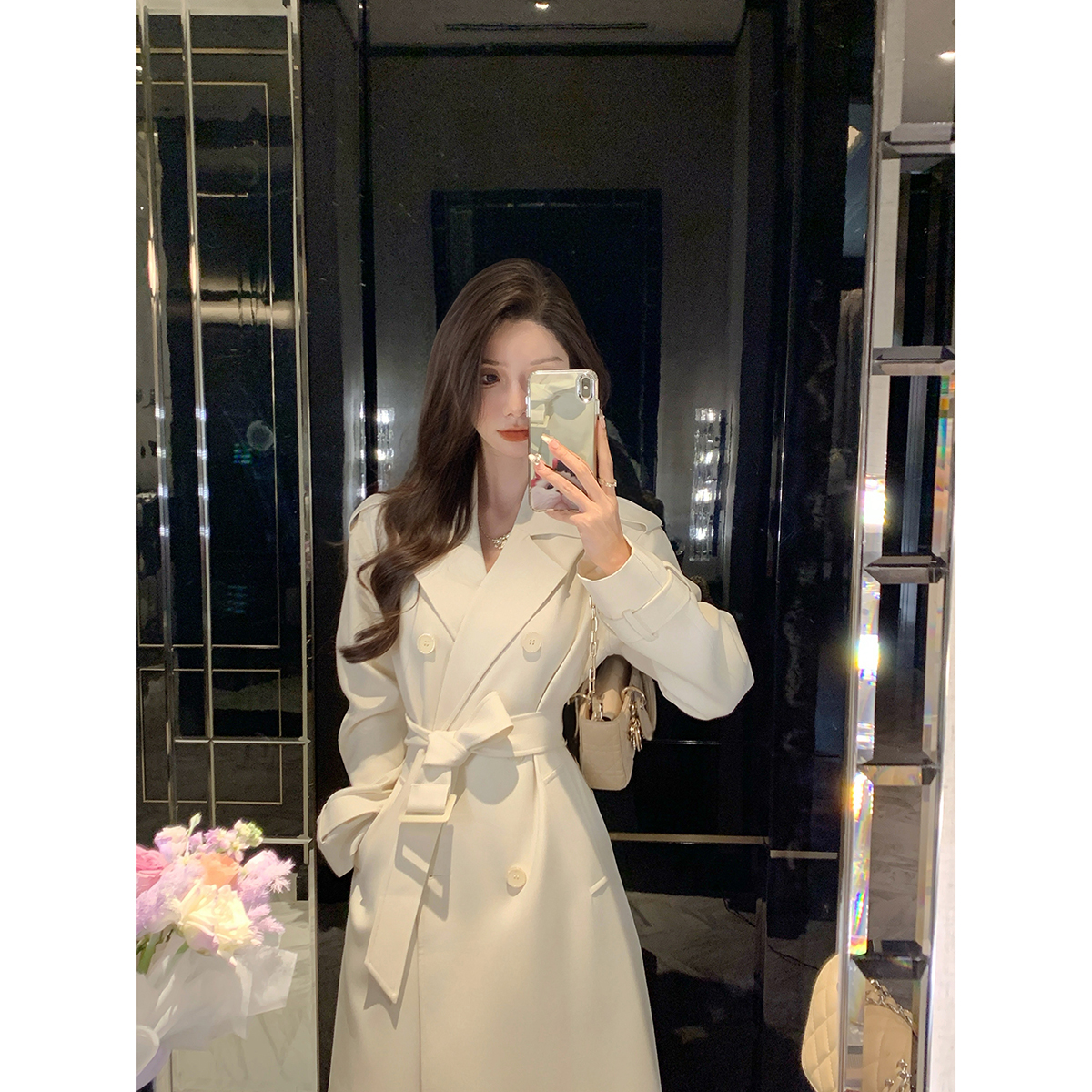 JustQin【韩剧女主】2025新款秋装高级气质绑带中长款风衣女外套