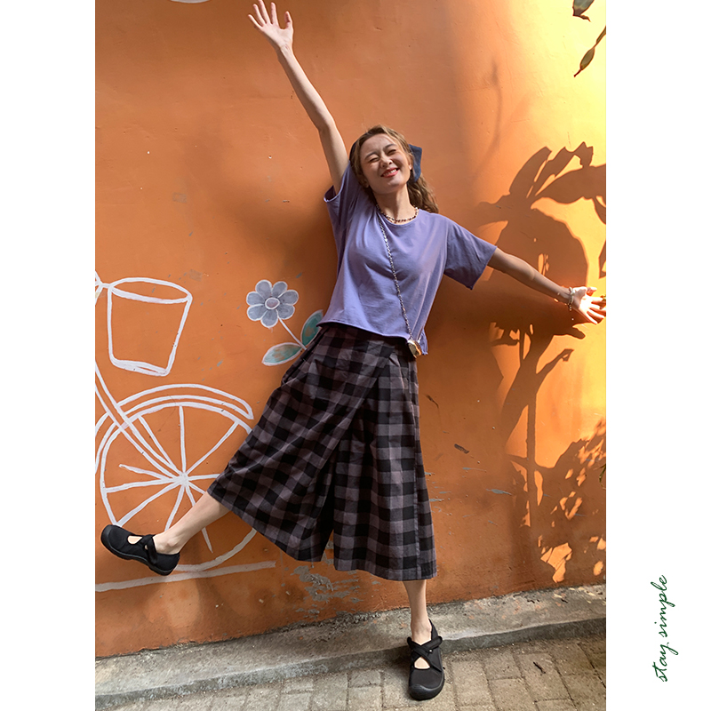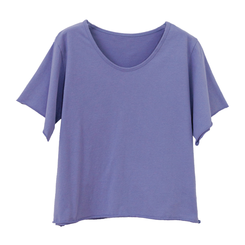 花吉B928薰衣草紫卷边V领纯棉宽松短袖T恤女2025新款夏纯色上衣
