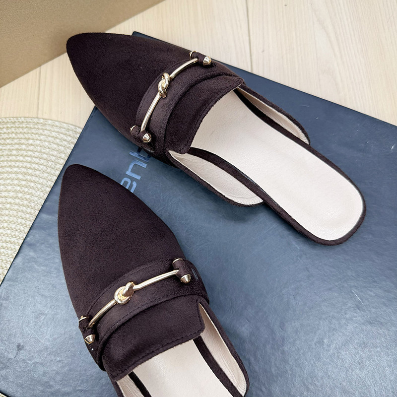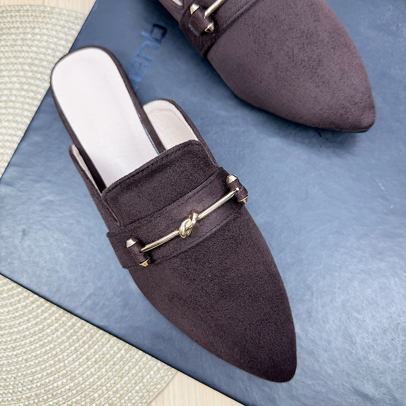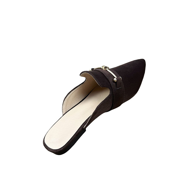 包头金属扣绊带平底半拖穆勒鞋