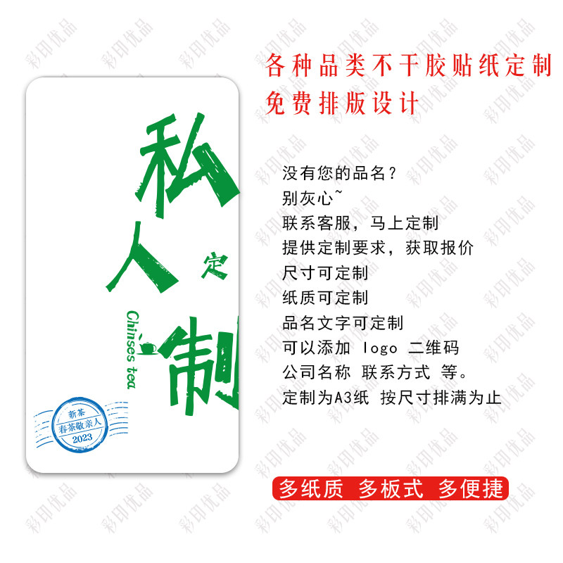 2026年明前绿茶不干胶贴纸