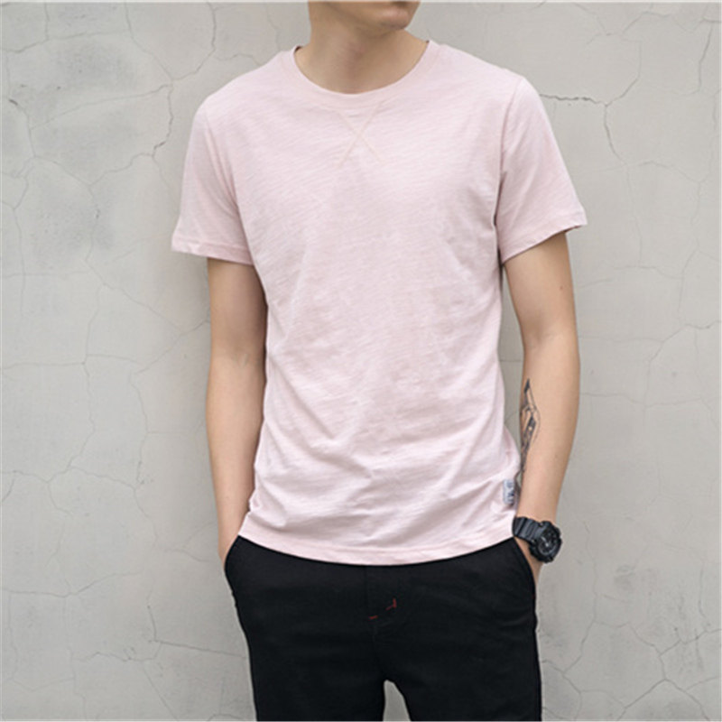 夏季宽松纯棉打底衫男士修身竹节棉圆领短袖T恤男装半袖上衣服潮