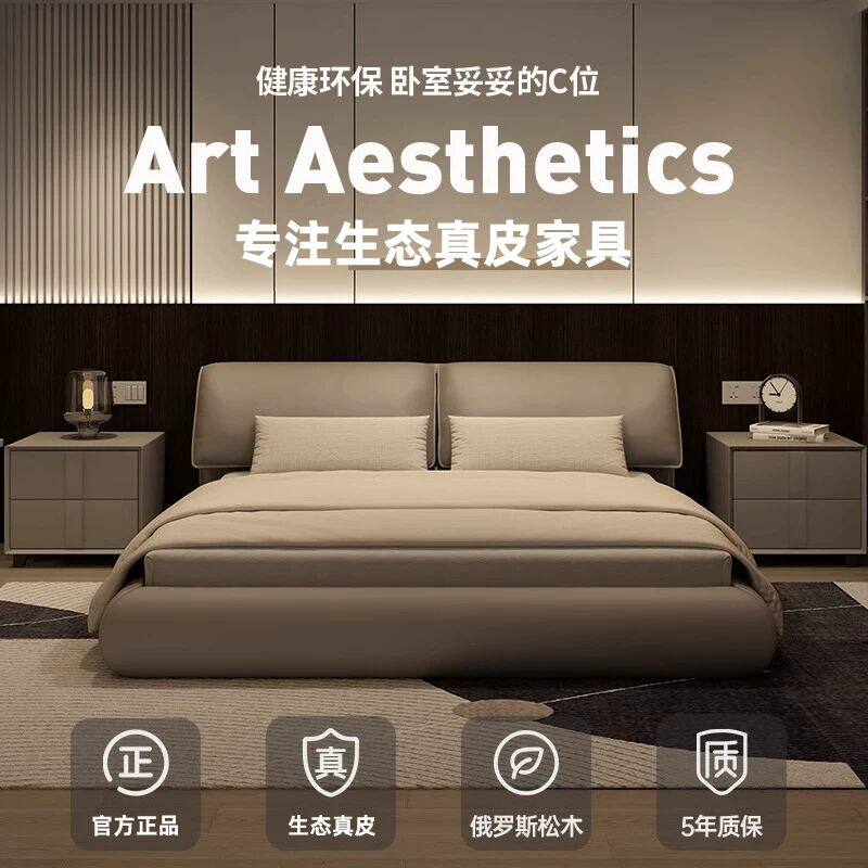 全友家居官网意式轻奢大象耳朵真皮床1米8双人床1米5高级主卧大床