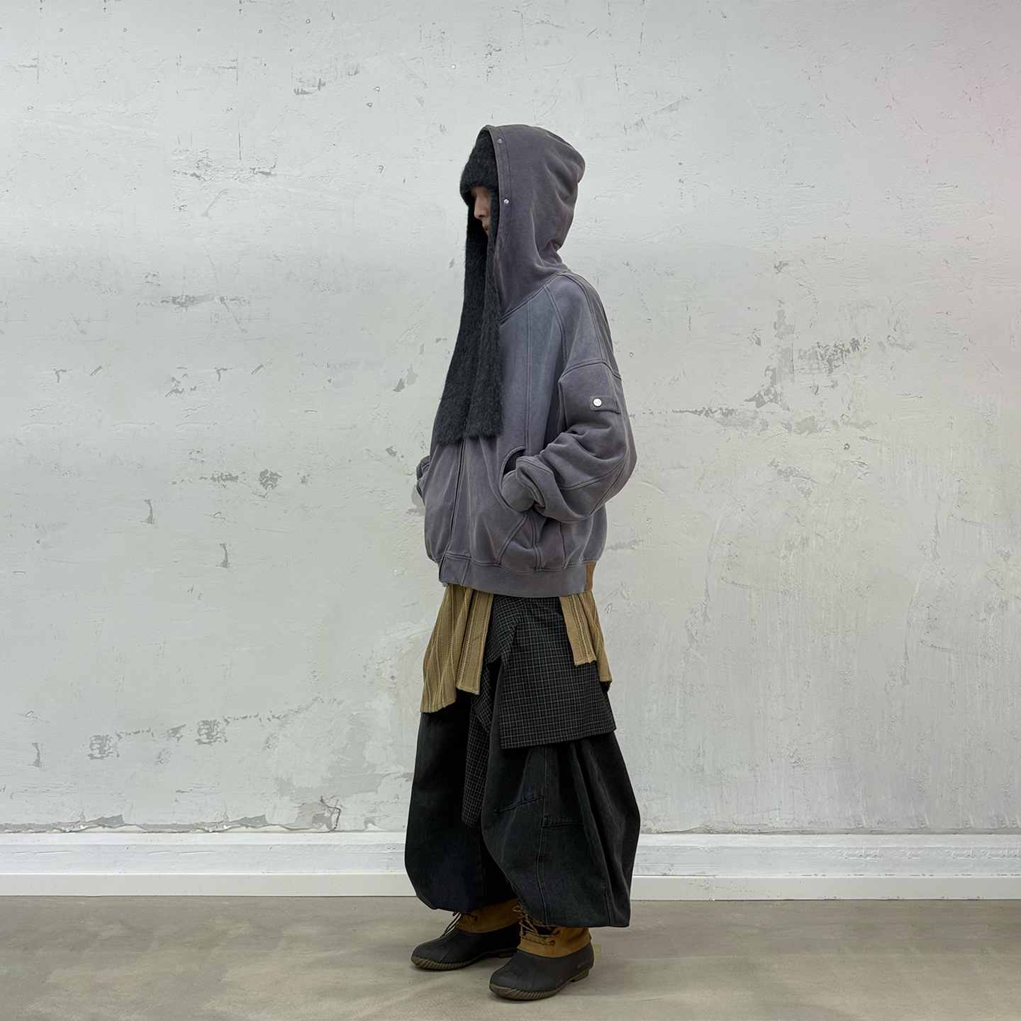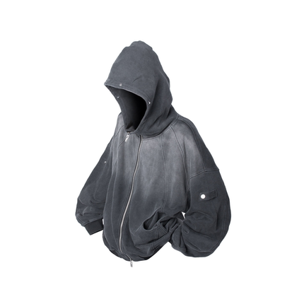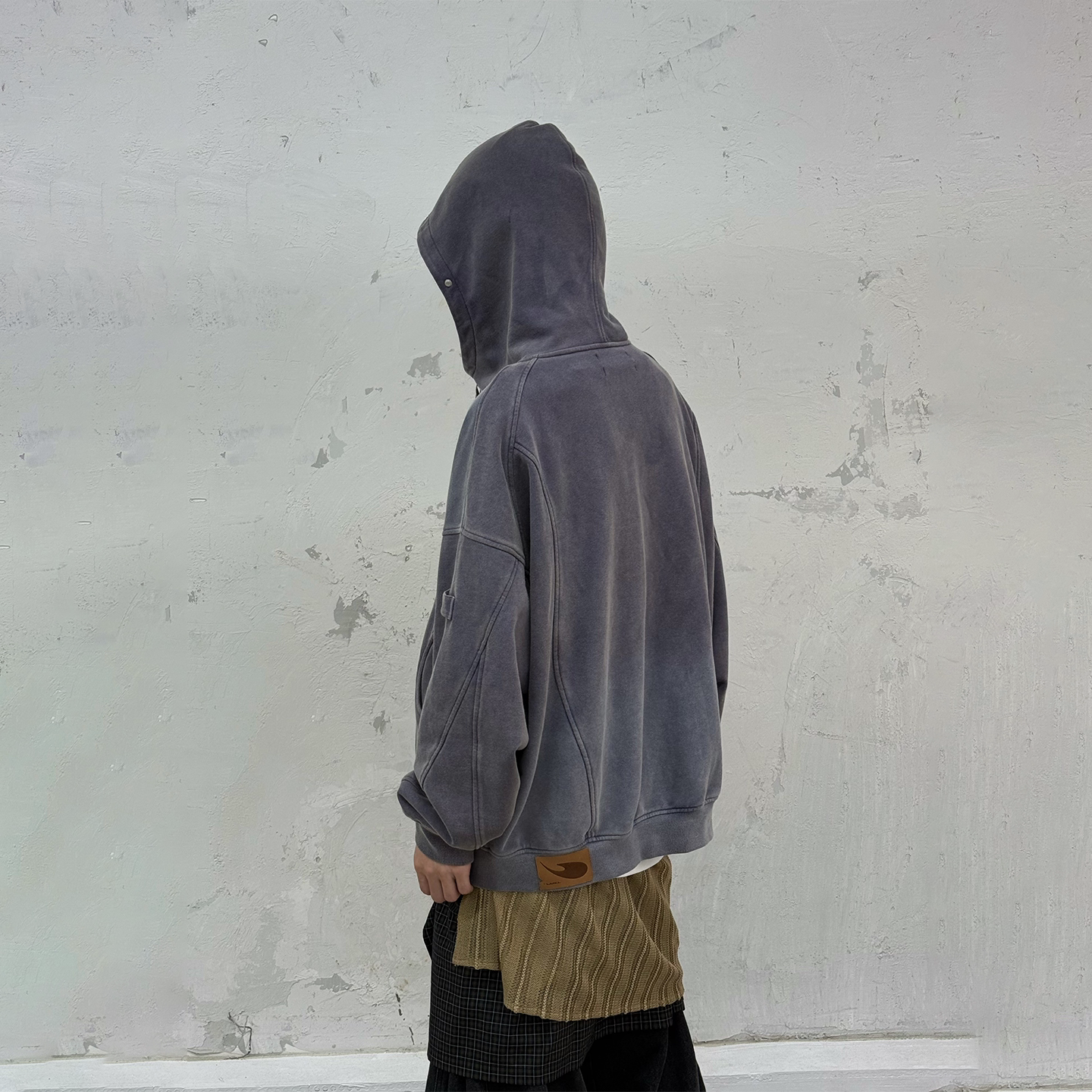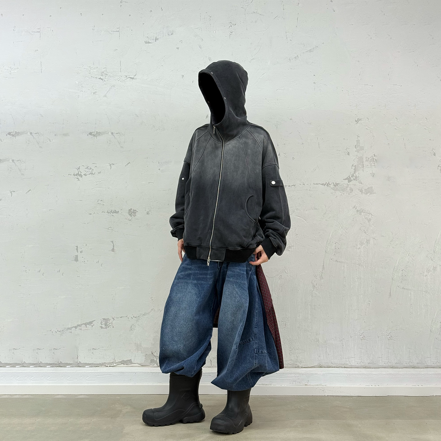 RELABEL (‘LABEL) 重工渐变洗水高领解构月牙口袋忍者拉链卫衣